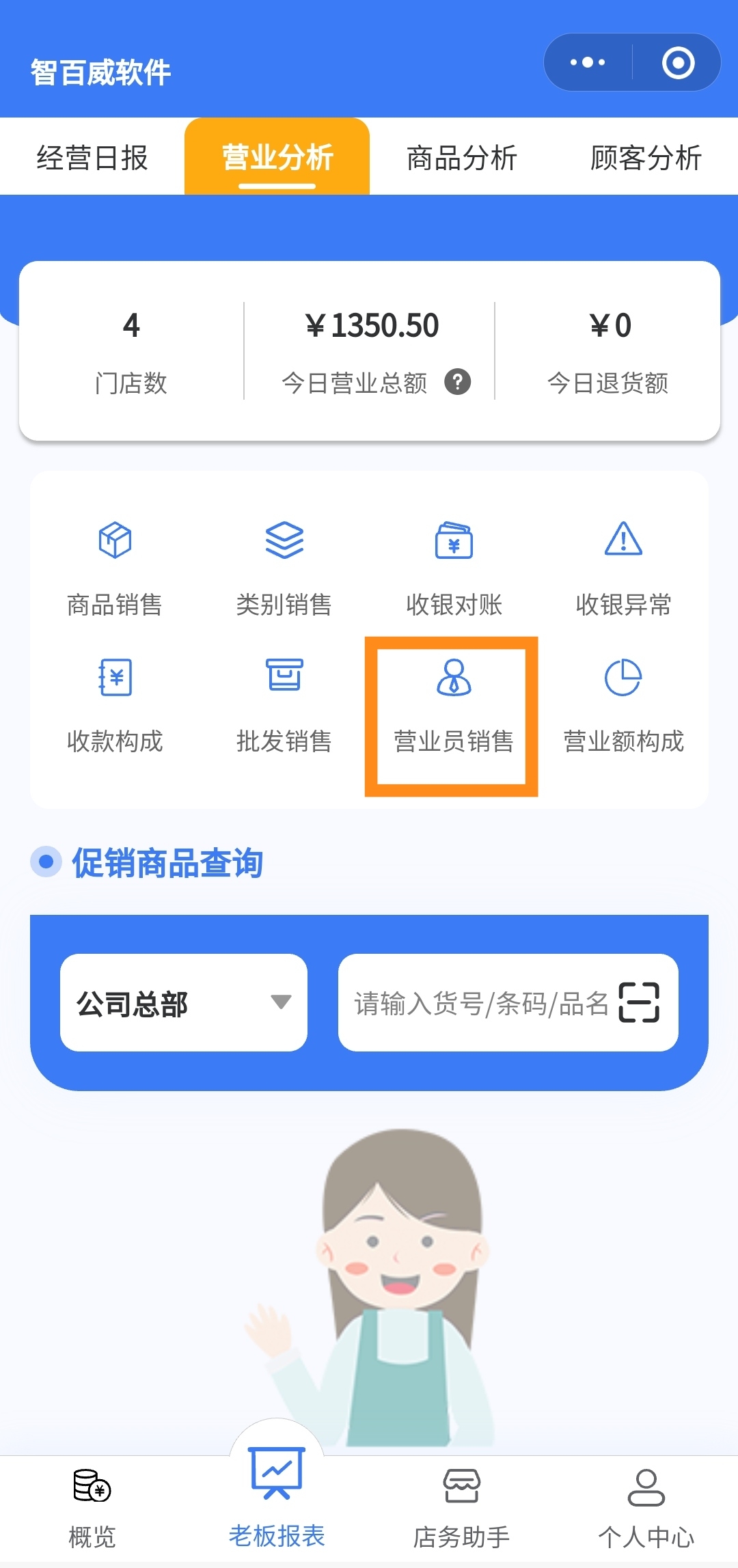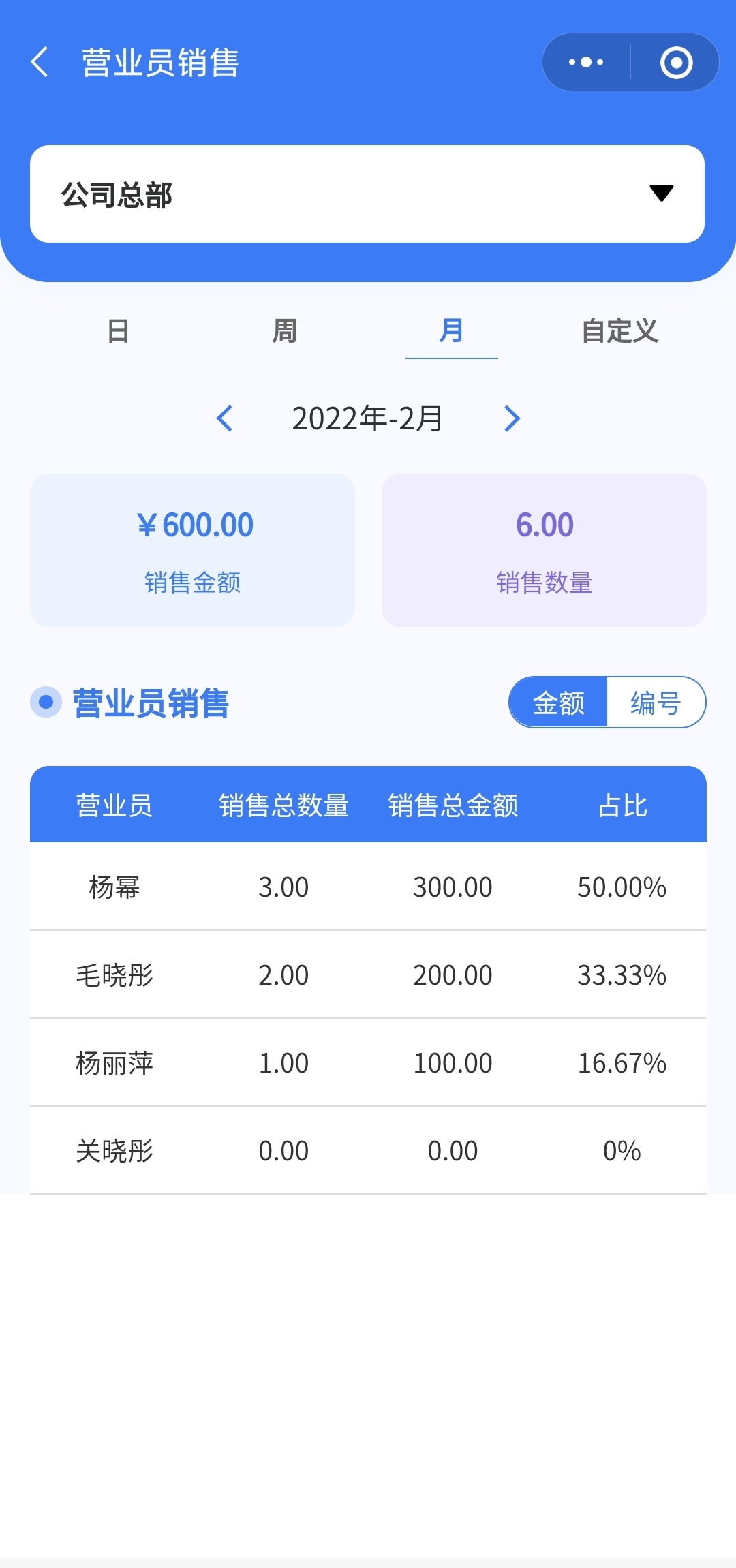 提供營(yíng)業(yè)員每日/每周/每月銷售數(shù)據(jù)分析,門店?duì)I業(yè)員績(jī)效如何,不在店里也能掌握。