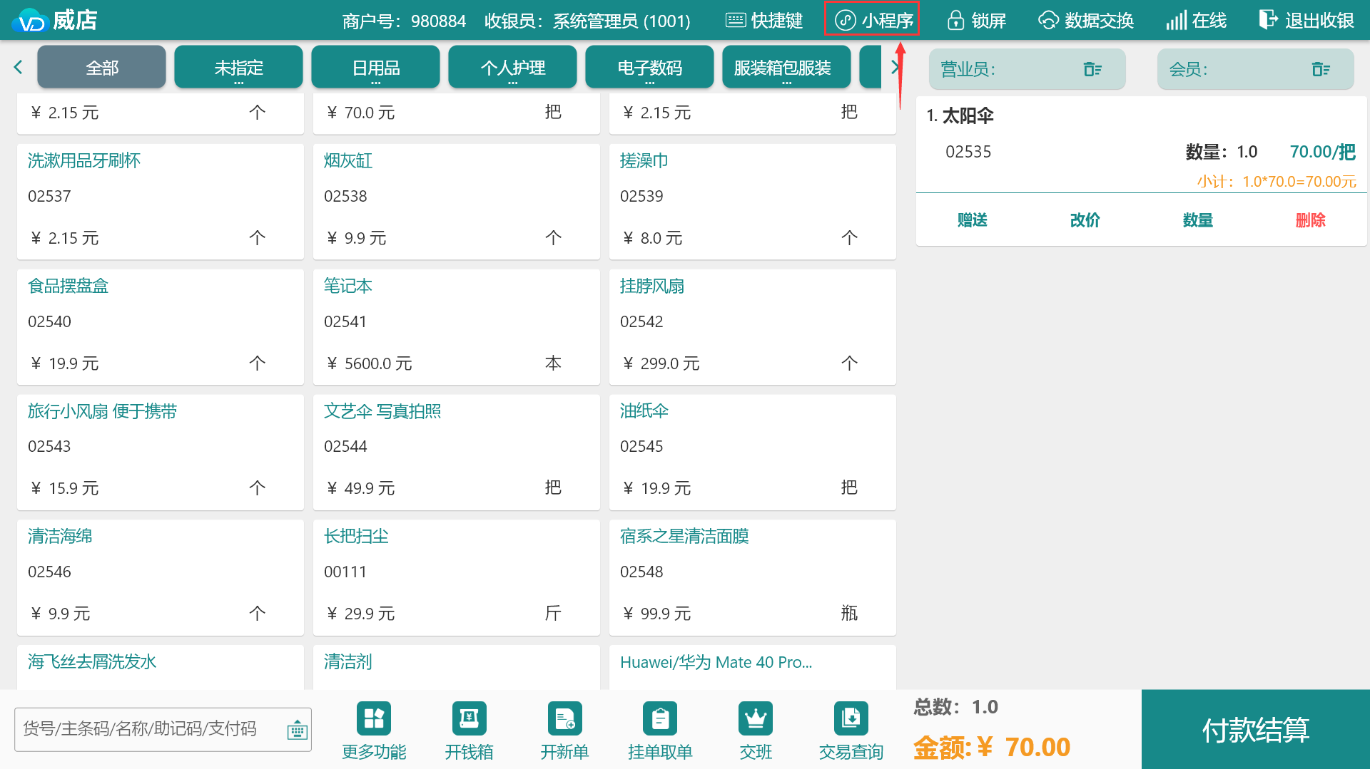 威店P(guān)C端前臺收銀采用單鍵快捷方式,調(diào)取指令更快捷