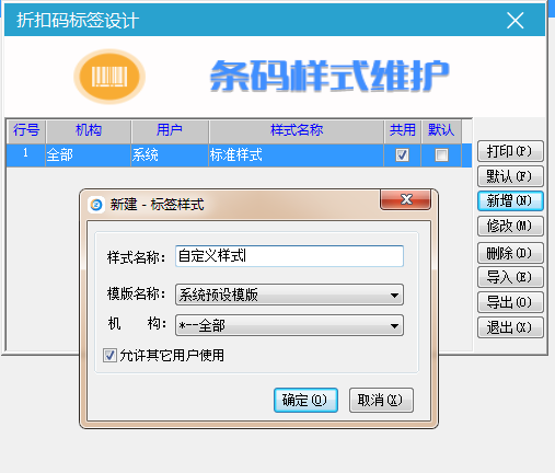 在折扣碼標(biāo)簽設(shè)計(jì)彈窗點(diǎn)擊新增或選擇已有樣式點(diǎn)擊修改,進(jìn)入打印樣式設(shè)計(jì)頁面進(jìn)行編輯并保存。