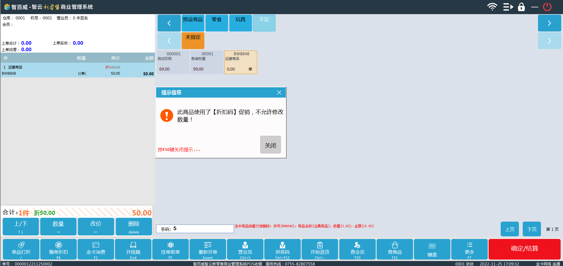 按商品折扣碼則是掃描商品折扣碼直接將相應(yīng)商品帶入銷售商品區(qū)。
