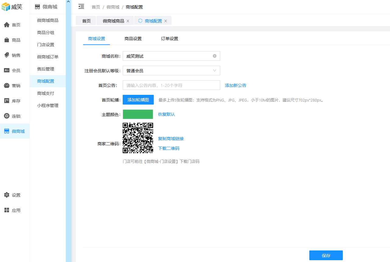智百威威笑新增微商城,用戶(hù)可免申請(qǐng)公眾號(hào)、小程序使用公版微商城,直接上線(xiàn)。同時(shí)也支持使用個(gè)人小程序,商戶(hù)可根據(jù)門(mén)店管理需求選擇使用公版或個(gè)人版微商城。