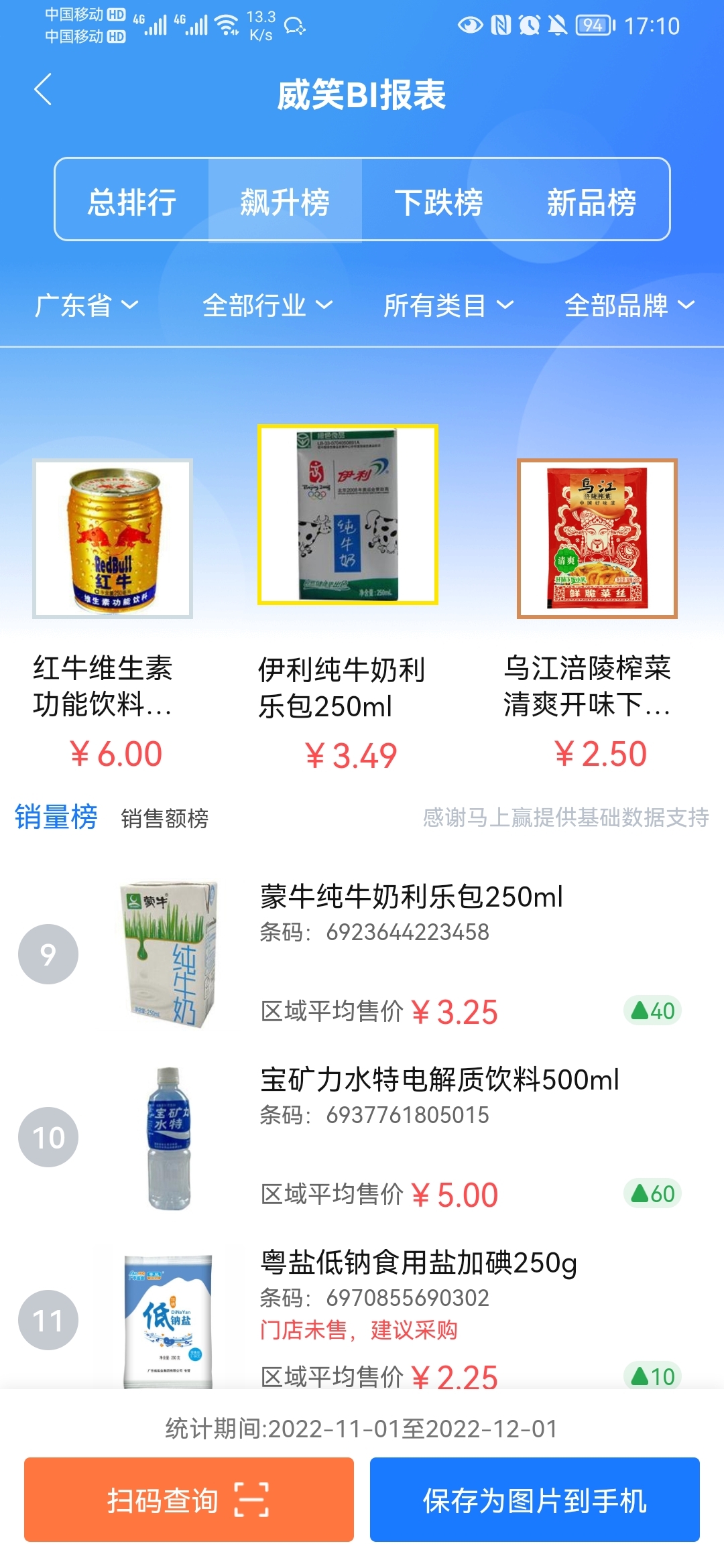 威笑移動(dòng)端“同城熱賣(mài)”BI數(shù)據(jù)里,現(xiàn)支持查詢(xún)飆升榜、下跌榜、新品榜數(shù)據(jù)。