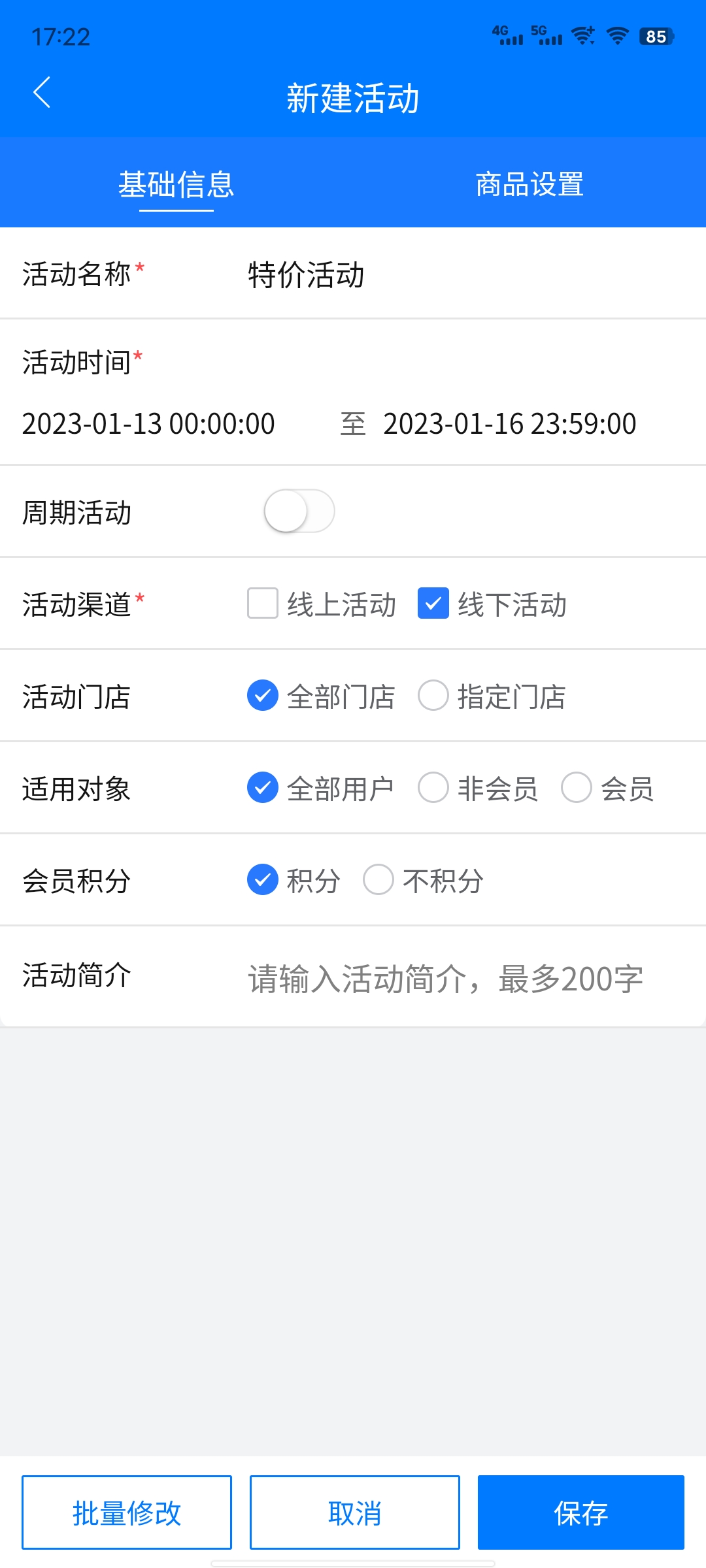 威笑移動(dòng)端新增“營(yíng)銷(xiāo)活動(dòng)”模塊,商家在移動(dòng)端即可創(chuàng)建/編輯活動(dòng)。