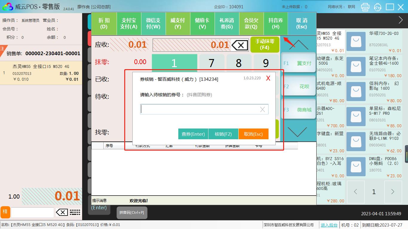 重磅消息!威云支持抖音券核銷啦!威云SaaS系統(tǒng)已無縫打通抖音來客,在后臺(tái)參數(shù)里開啟前臺(tái)即可核銷。本期威云優(yōu)化功能可是一個(gè)比一個(gè)實(shí)用呢,咱們一起往下看看都有哪些吧~