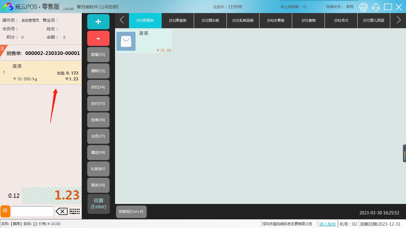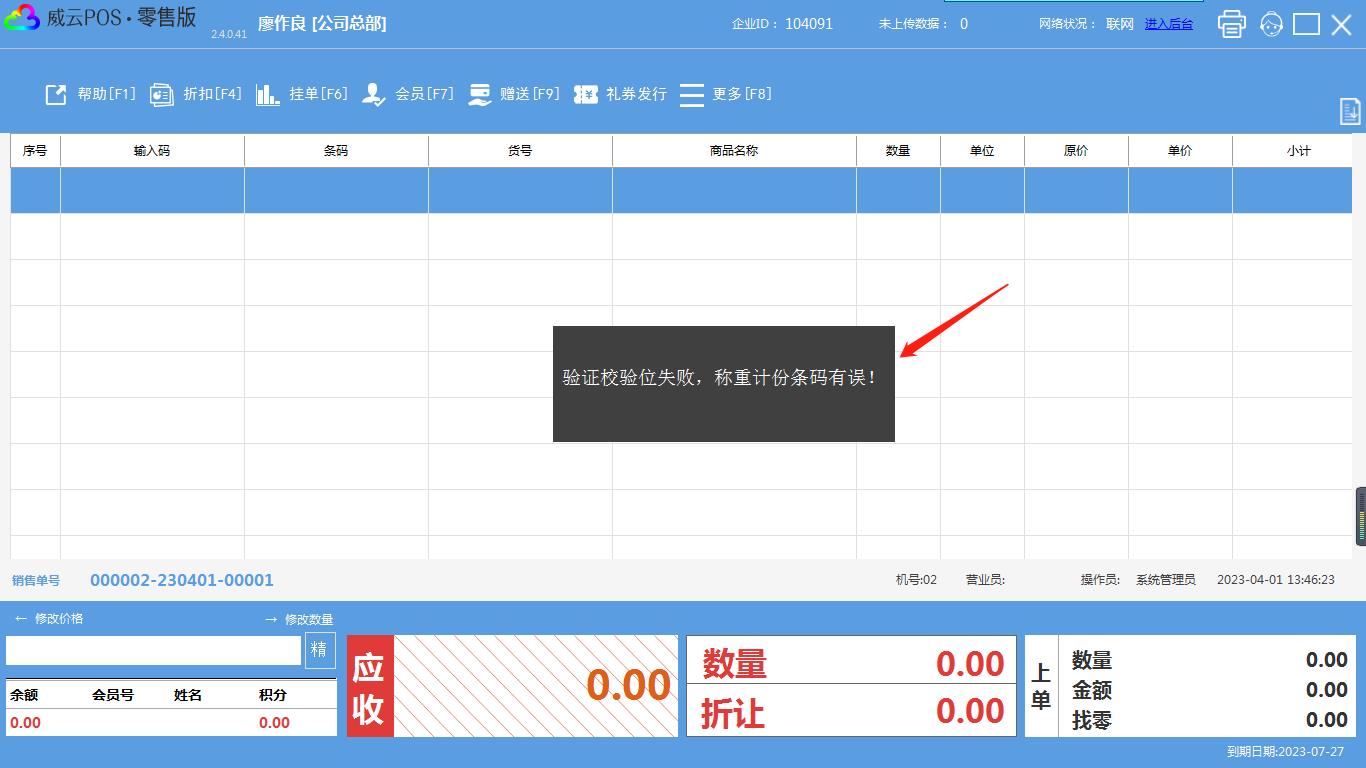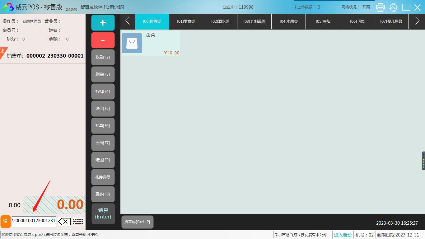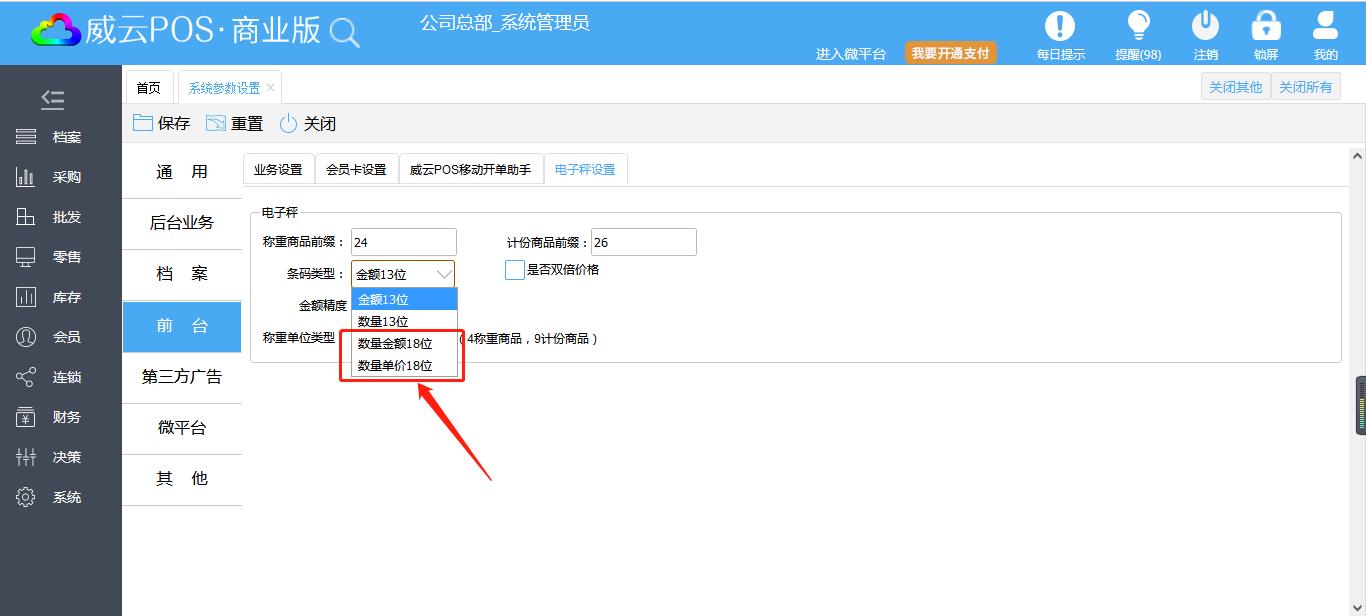 威云SaaS前臺(tái)增加了掃18位稱重碼的功能