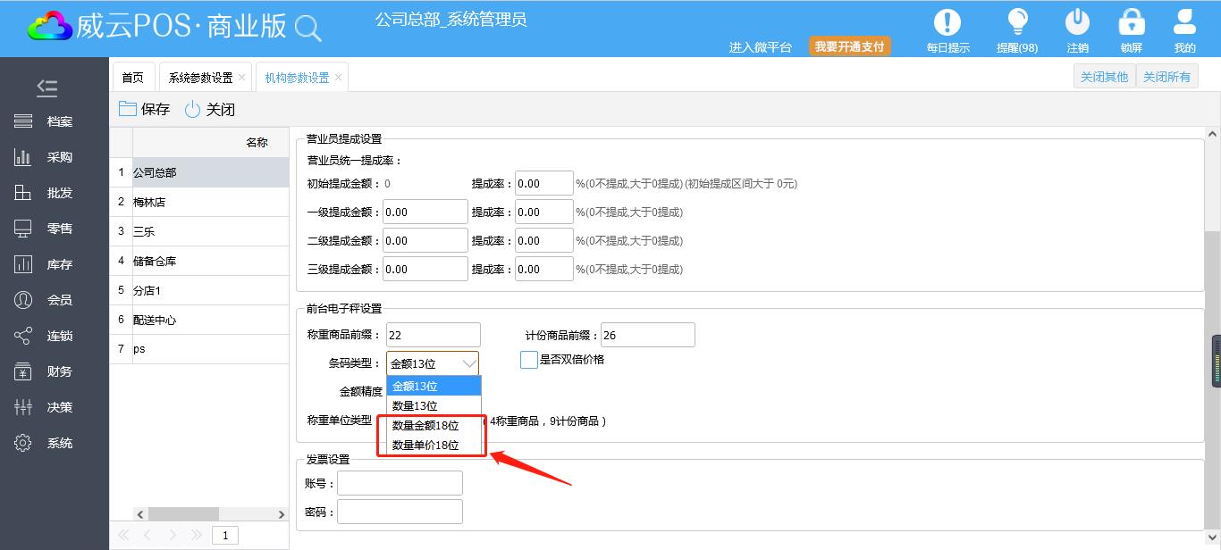 威云SaaS前臺(tái)條碼標(biāo)簽秤設(shè)置增加了佰倫斯 LB150AL和LNA1500HC型號(hào)下發(fā)秤的對(duì)接功能