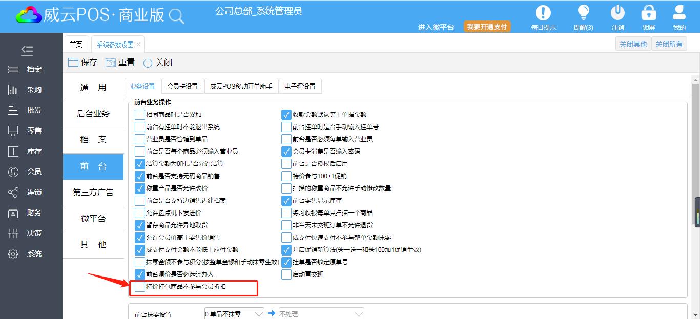 威云SaaS前臺(tái)增加了特價(jià)打包商品是否參與會(huì)員特價(jià)的參數(shù)功能