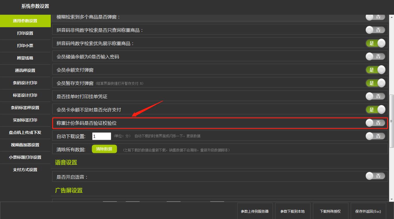 威云SaaS前臺(tái)通用參數(shù)增加了稱重計(jì)份條碼是否驗(yàn)證校驗(yàn)位的參數(shù)功能