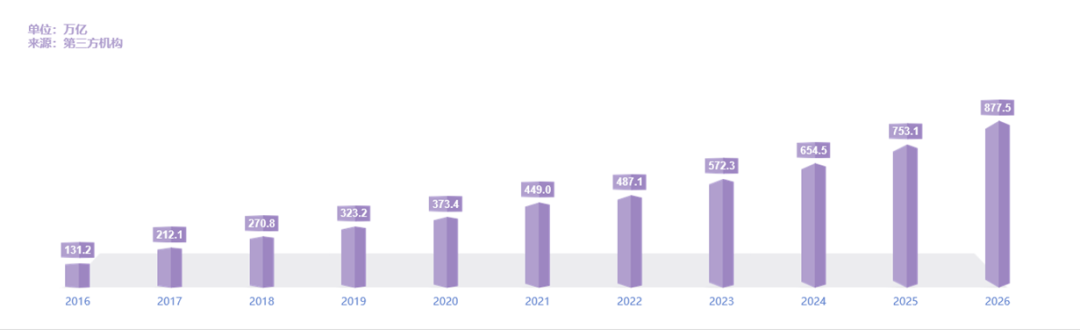 隨著互聯(lián)網和移動智能終端的快速發(fā)展,移動支付已成為當前最為流行的支付方式之一。根據(jù)數(shù)據(jù)顯示預測,從2016年到2026年,中國移動支付交易規(guī)模呈持續(xù)增長趨勢。