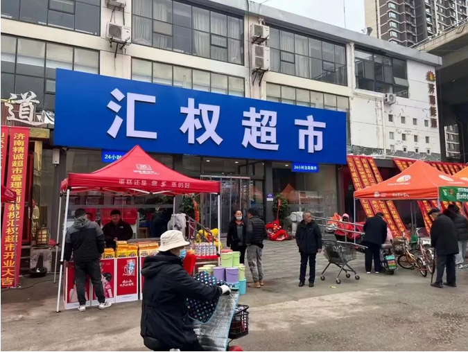 匯權(quán)超市位于山東省,經(jīng)營(yíng)面積約2000平方,上線智百威智云新零售系統(tǒng)。