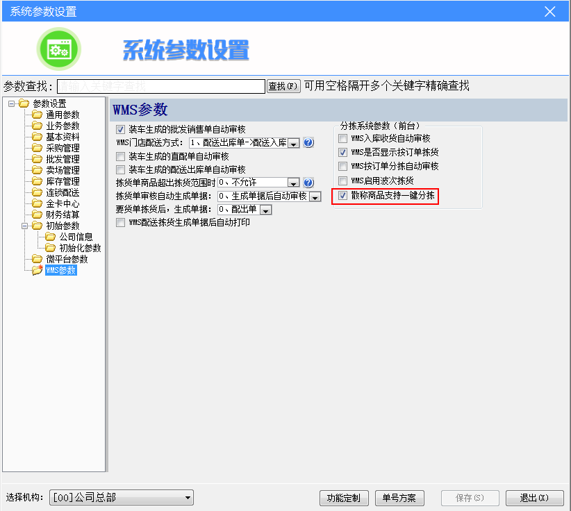注:稱重商品想要通過一鍵分揀來揀貨需勾選后臺參數(shù):散稱商品支持一鍵分揀。