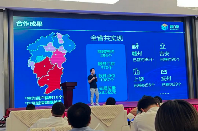 智百威總經(jīng)理龐小兵先生在大會(huì)上分享了,江西郵政聯(lián)合智百威產(chǎn)品技術(shù)共同落地的數(shù)字零售商戶方案及成果,目前江西成果顯著。