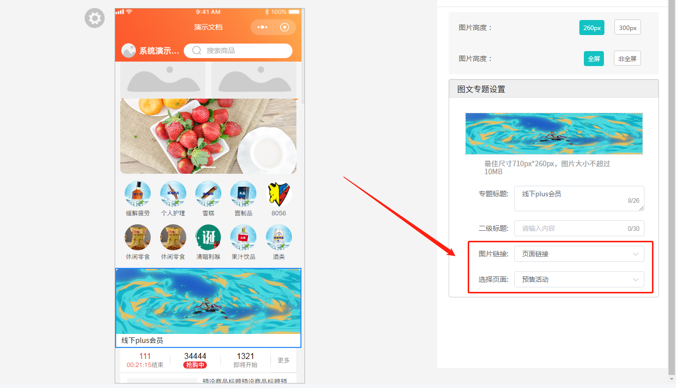 先在首頁設(shè)置預(yù)售活動跳轉(zhuǎn)頁面