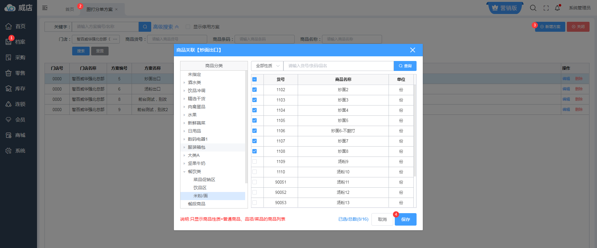 新建一個(gè)分單方案 湯粉類 關(guān)聯(lián)湯粉類商品