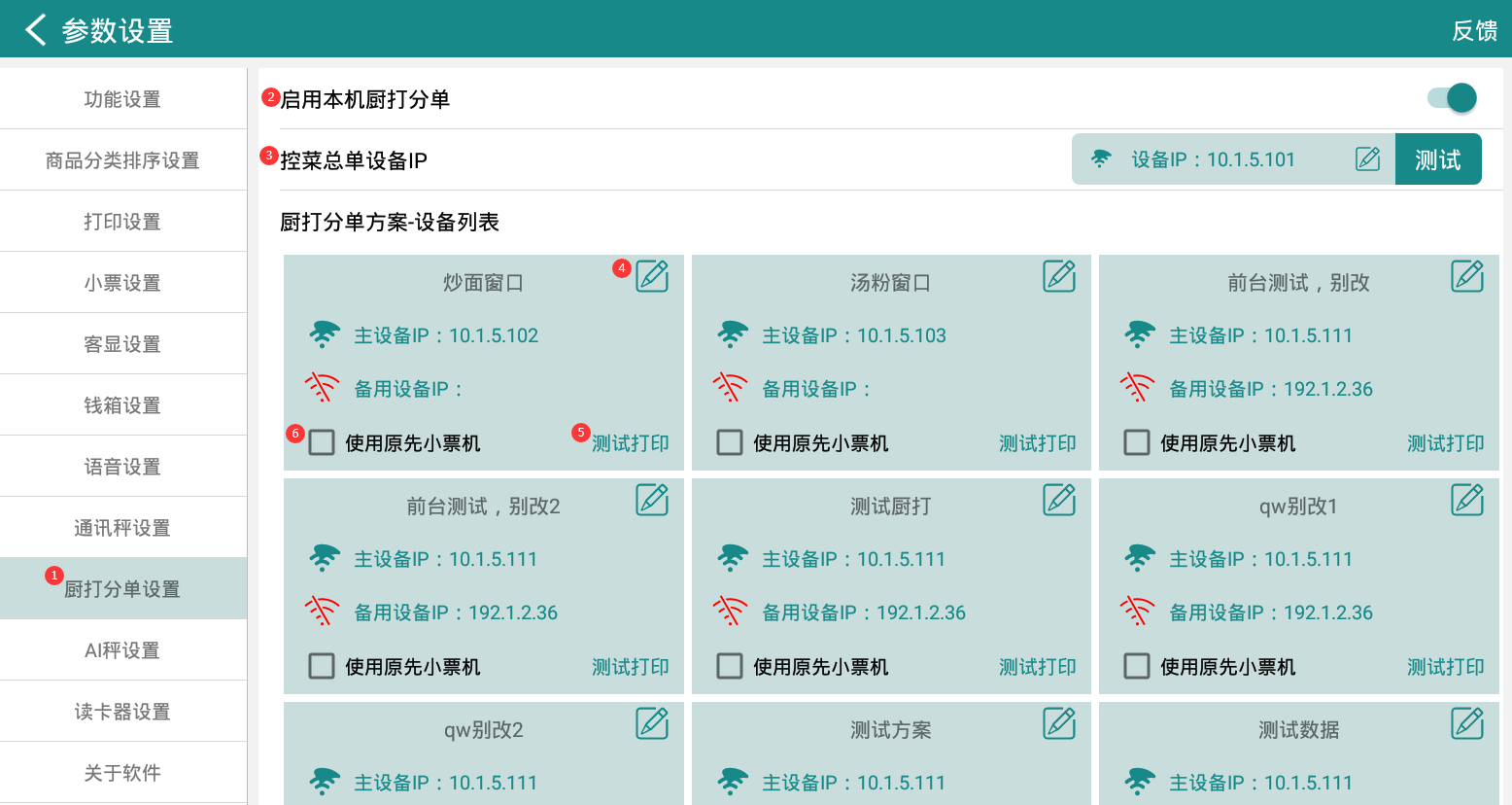 只針對(duì)方案里主設(shè)備 和 備用設(shè)備 (如果勾上使用原先小票機(jī),測(cè)試打印不會(huì)打)