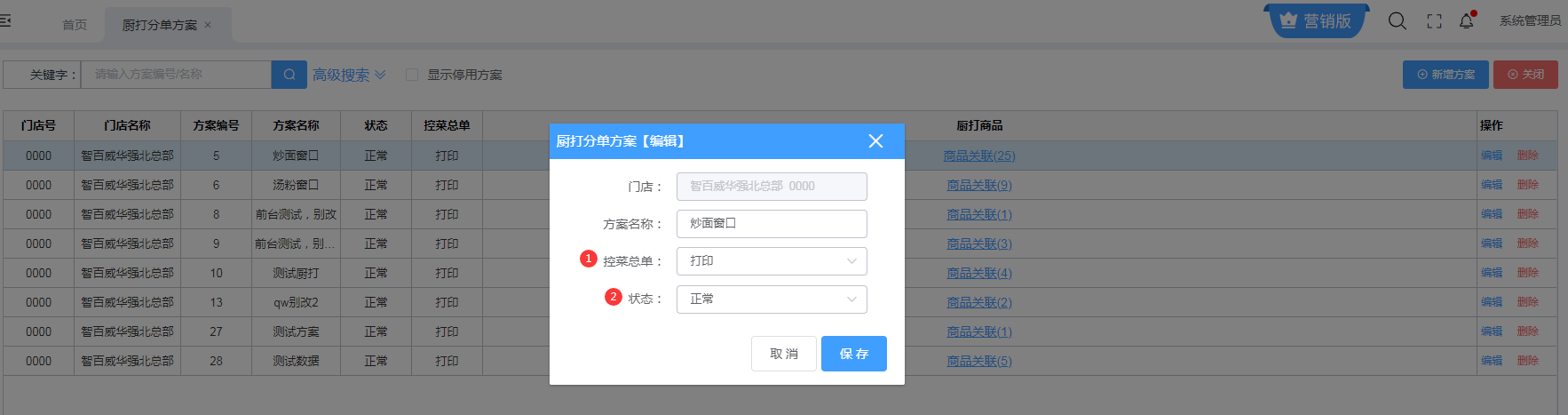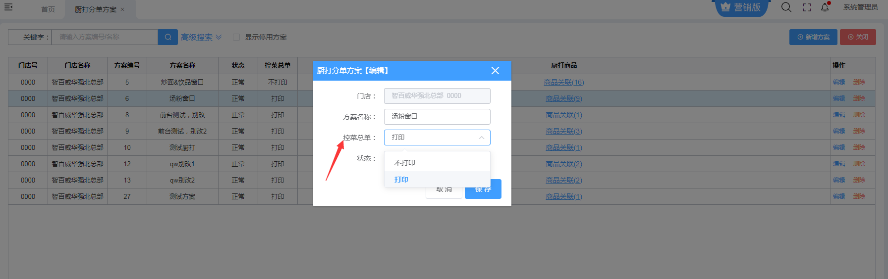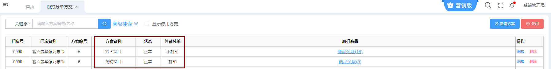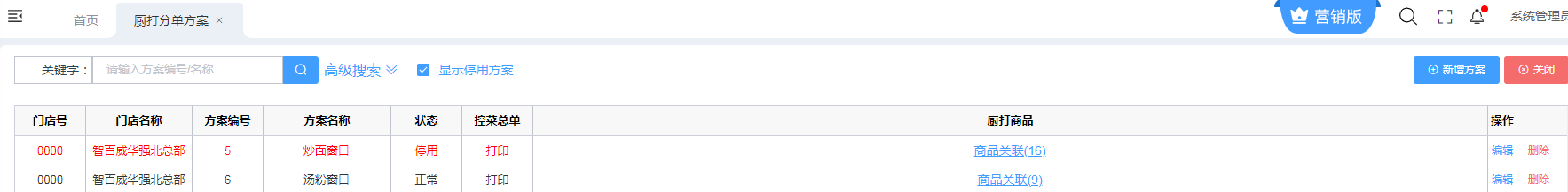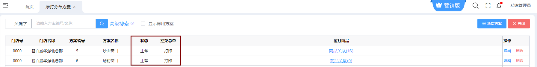 場(chǎng)景③:方案控菜總單=打印 ,部分方案狀態(tài)= 停用