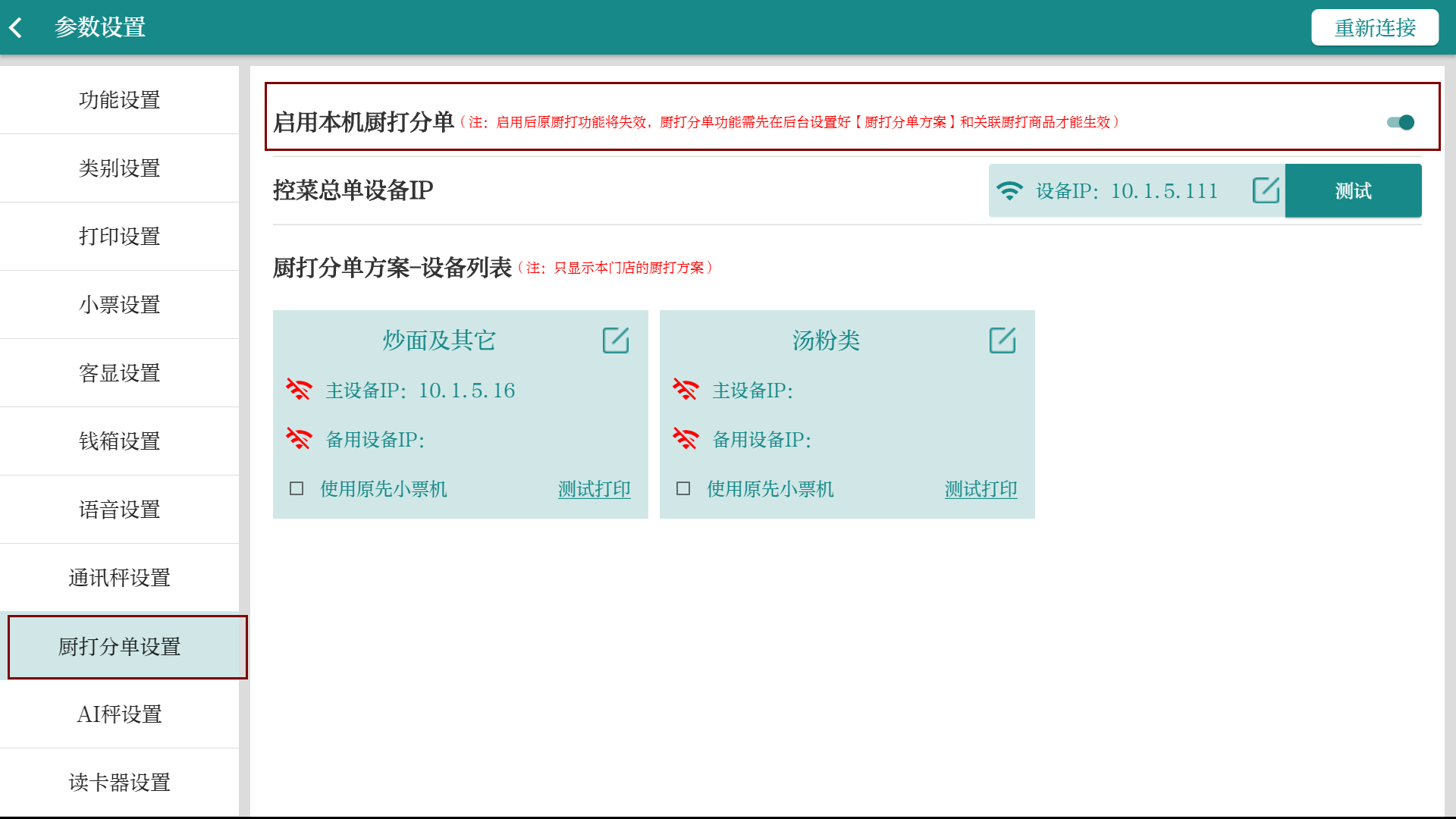 有 炒面類、 湯粉類 商品,需要分別在不同打印機(jī)上打印