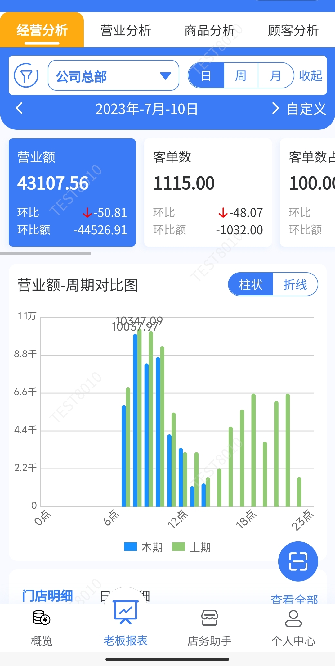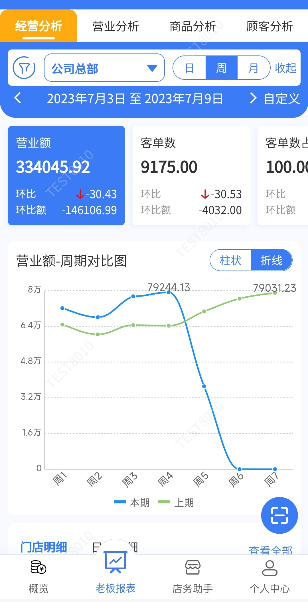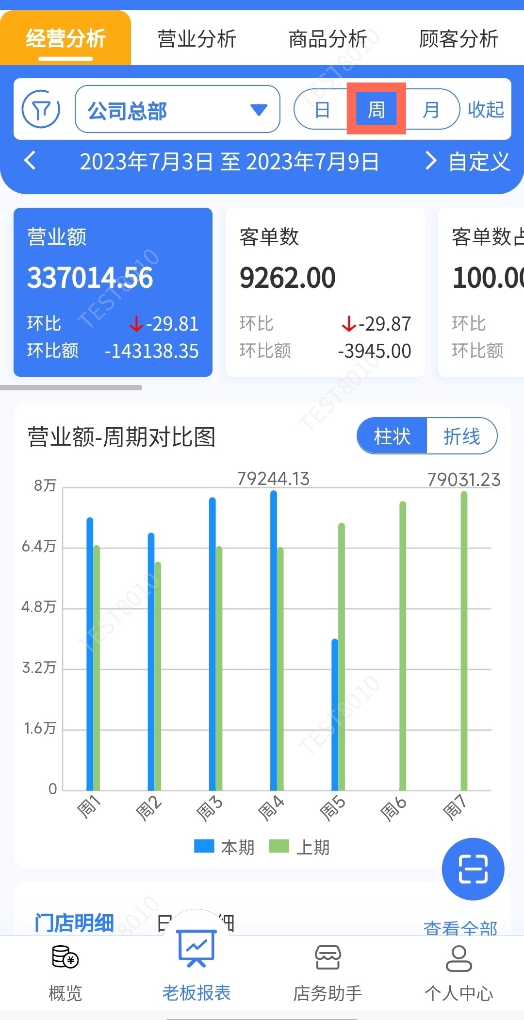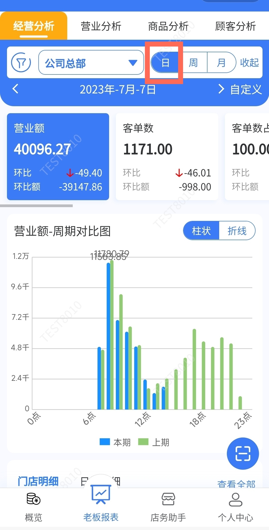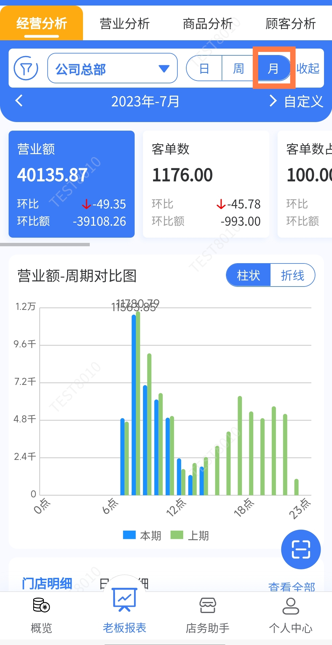 店賬通PRO升級(jí)后,新增了“ 經(jīng)營分析”報(bào)表,可按日、周、月分析對(duì)比。
