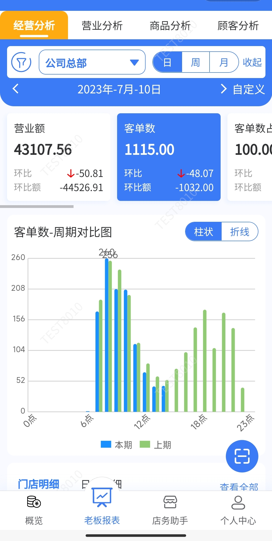 根據(jù)客單數(shù)生成每日、每周、每月周期對(duì)比數(shù)據(jù)分析。