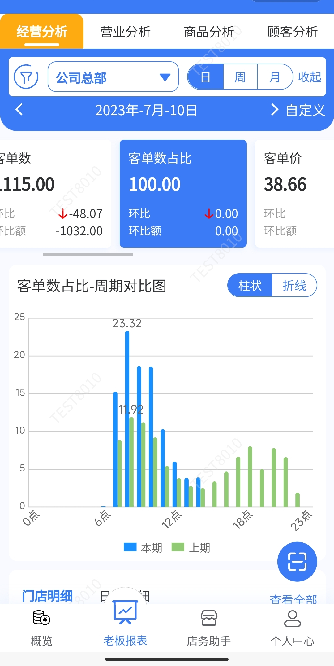 根據(jù)客單數(shù)占比數(shù)據(jù)生成每日、每周、每月周期對(duì)比數(shù)據(jù)分析。