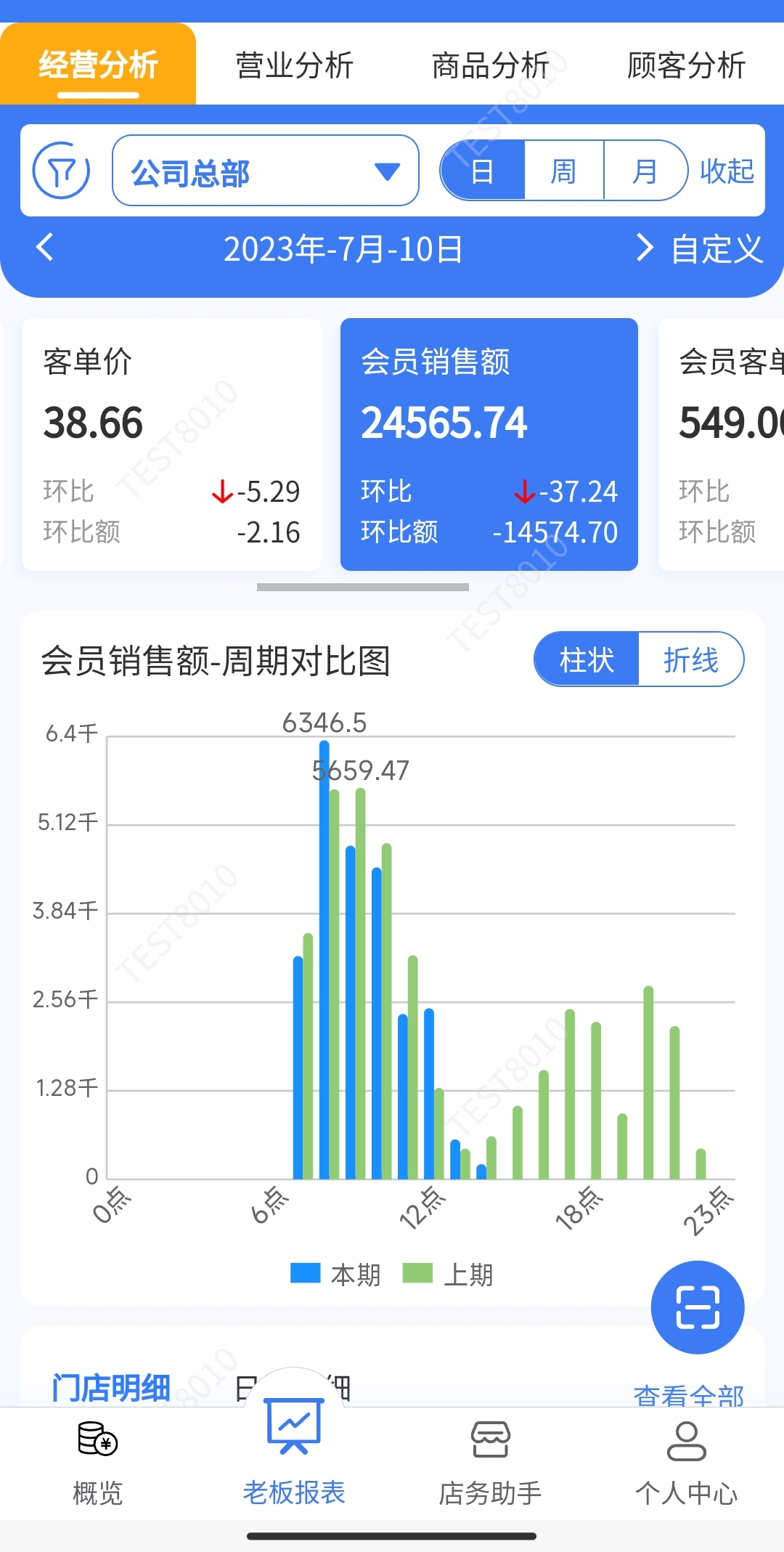 根據(jù)會(huì)員銷售額生成每日、每周、每月周期對(duì)比數(shù)據(jù)分析。
