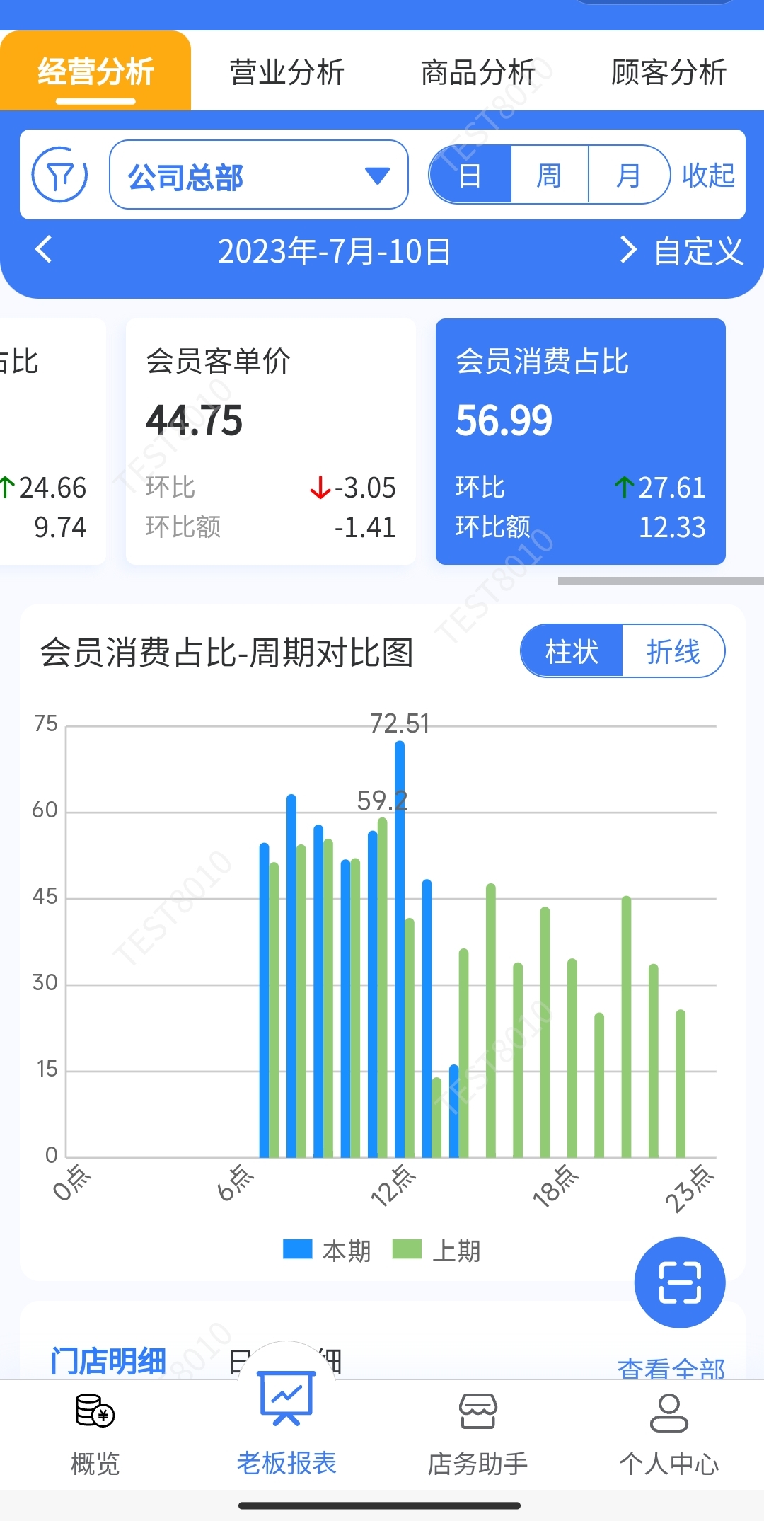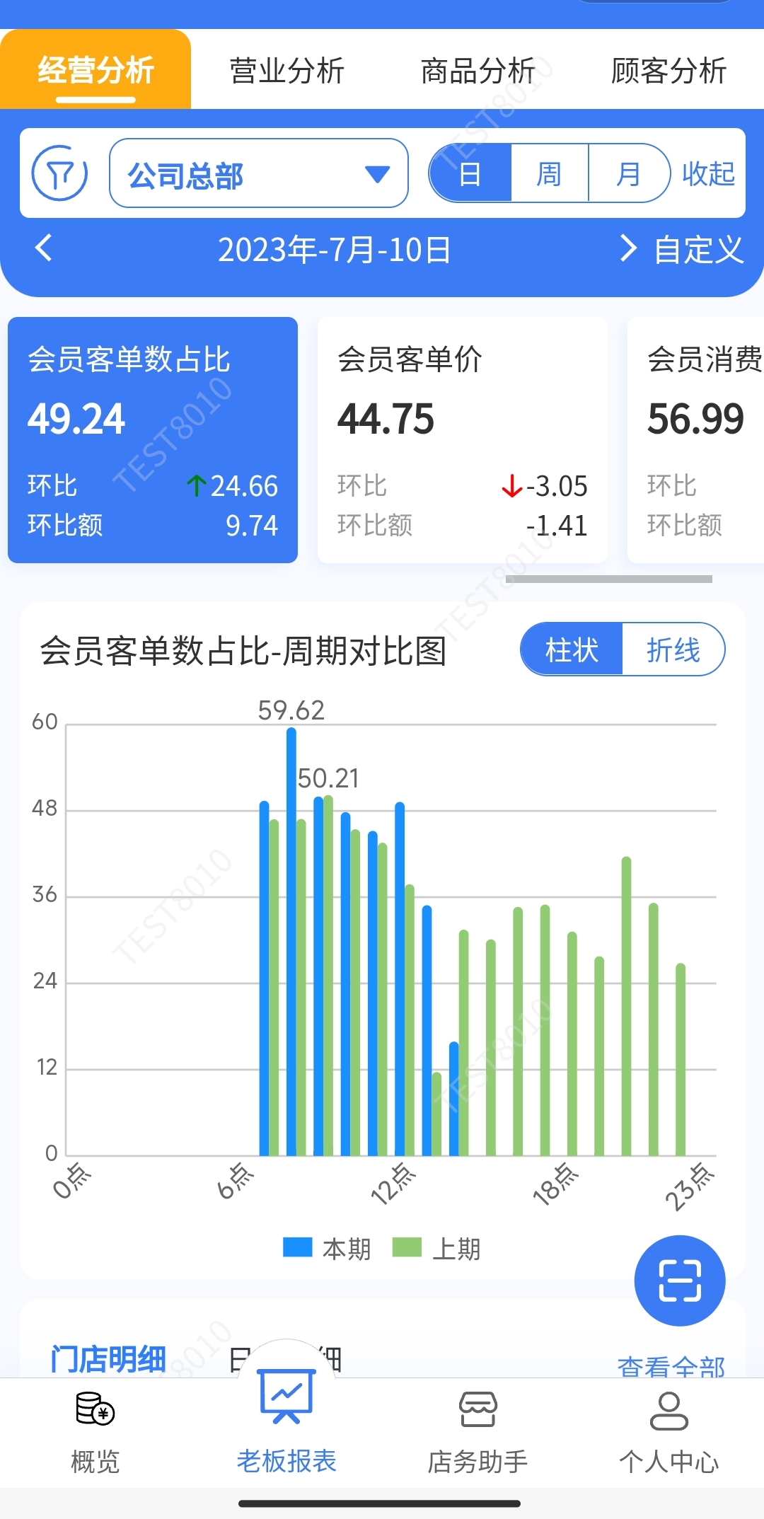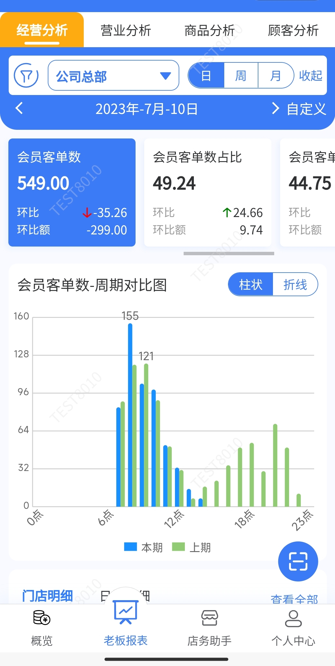 根據(jù)會(huì)員客單數(shù)占比生成每日、每周、每月周期對(duì)比數(shù)據(jù)分析。