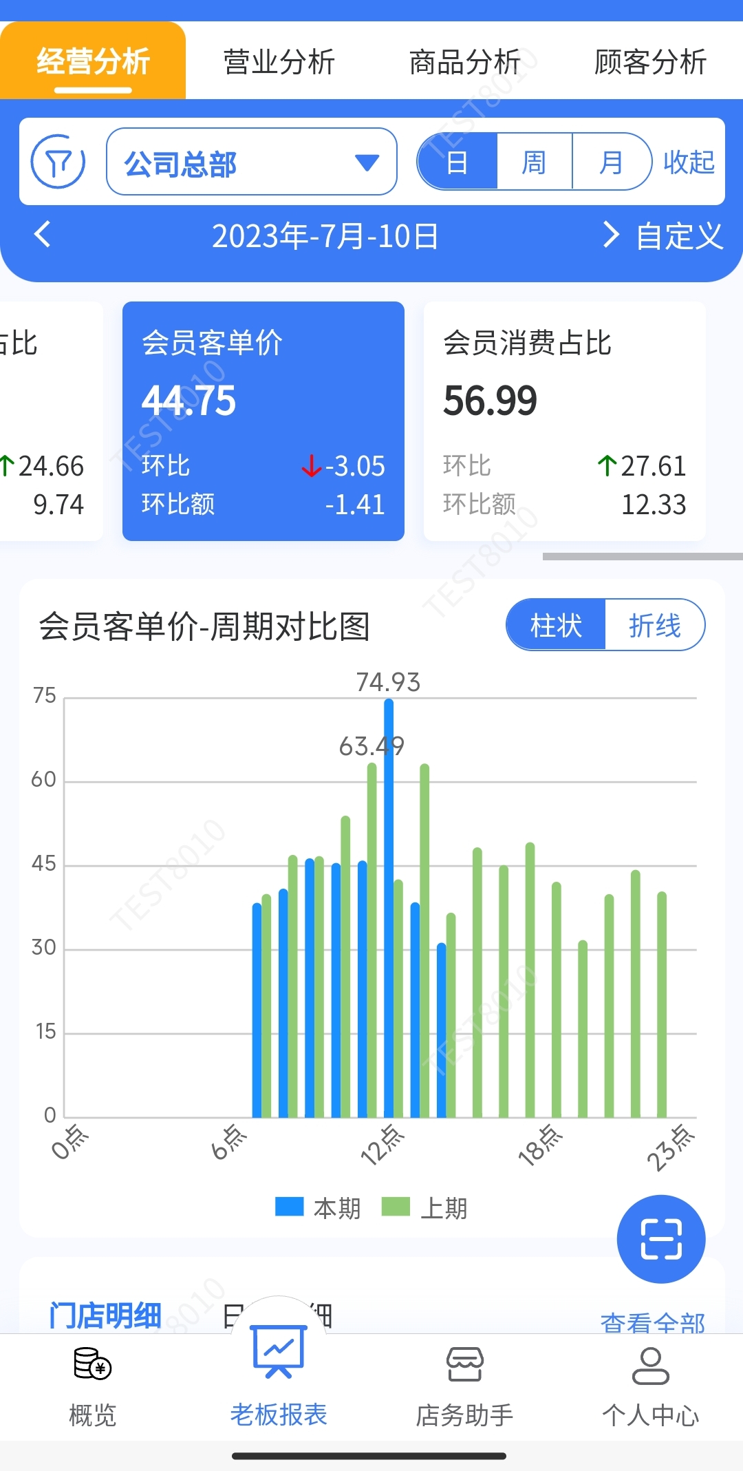 根據(jù)會(huì)員客單價(jià)占比生成每日、每周、每月周期對(duì)比數(shù)據(jù)分析。