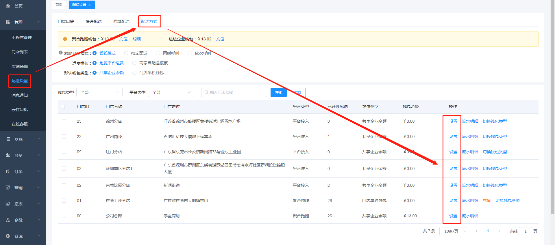 ● 聚合跑腿錢包:企業(yè)的錢包余額