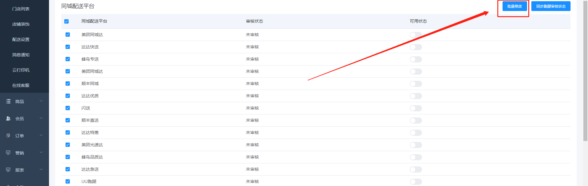 3)批量修改彈窗,可用狀態(tài)默認(rèn)選擇“開啟”
