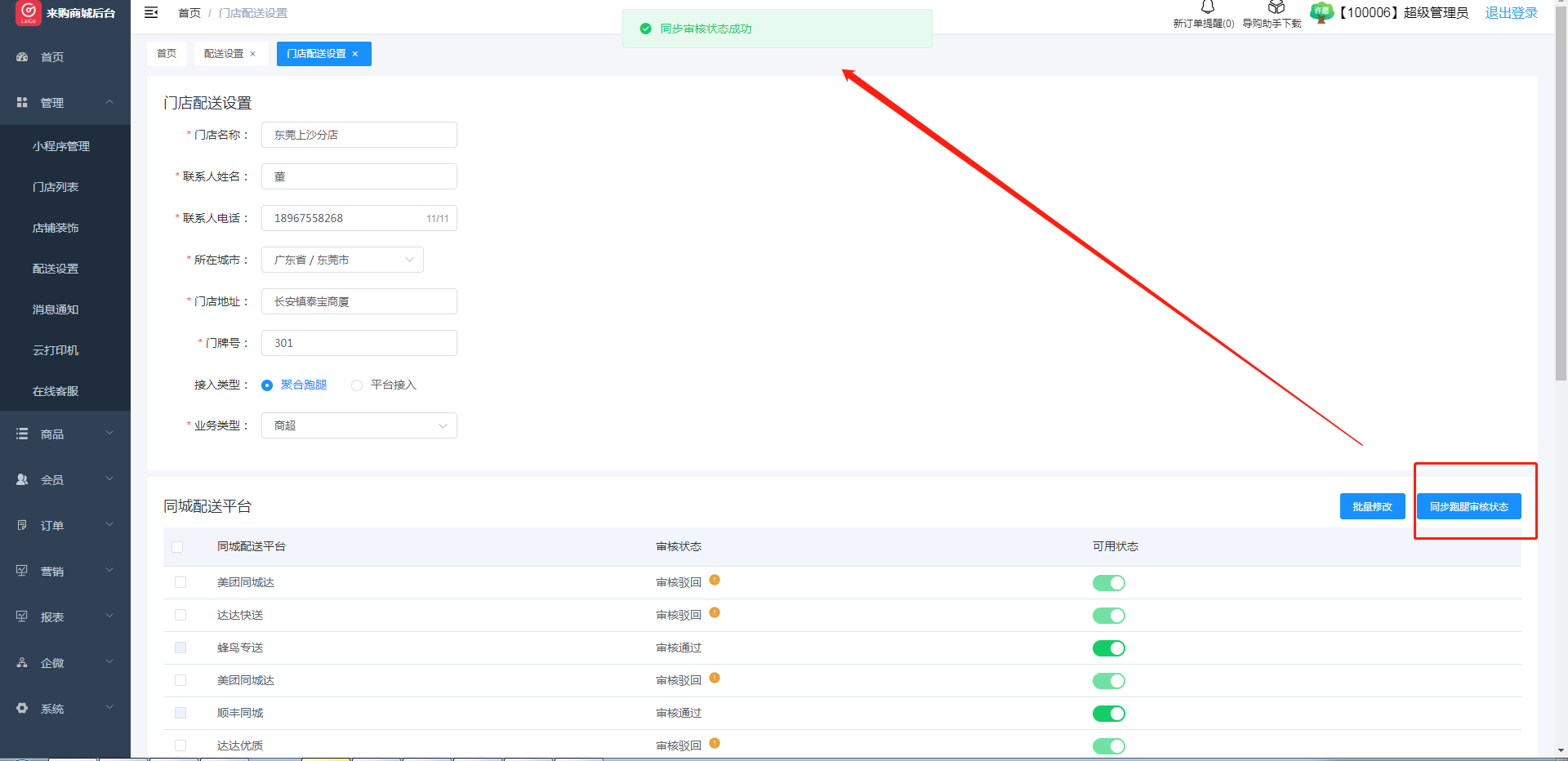 4)點擊右邊“同步跑腿審核狀態(tài)”的按鈕,提示同步狀態(tài)成功即可