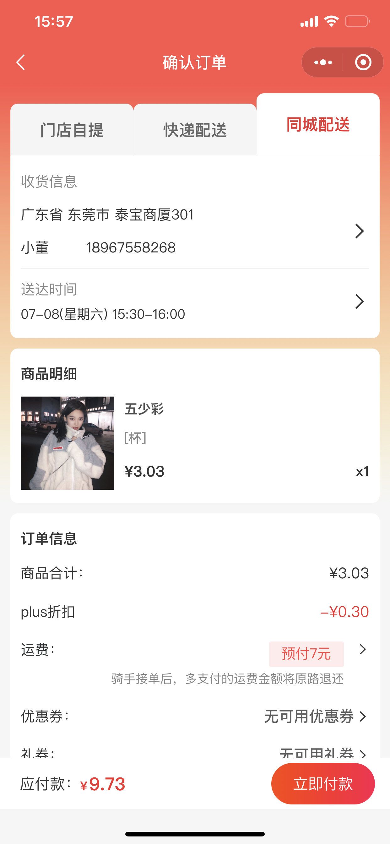 配置完成,下單演示流程(省錢模式)。下單選擇跑腿平臺,并且提交訂單(非省錢模式直接提交訂單即可,無需選擇平臺)