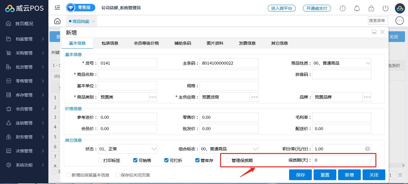 01. 威云后臺(tái)增加了商品管理保質(zhì)期的功能
