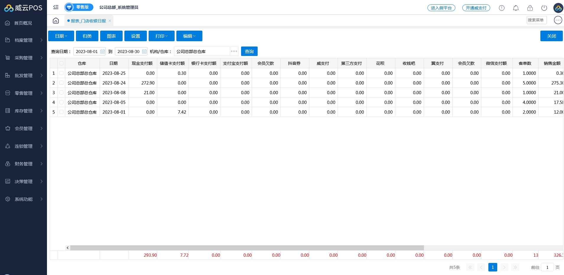 04. 威云后臺(tái)增加了門店收銀日?qǐng)?bào)報(bào)表的功能