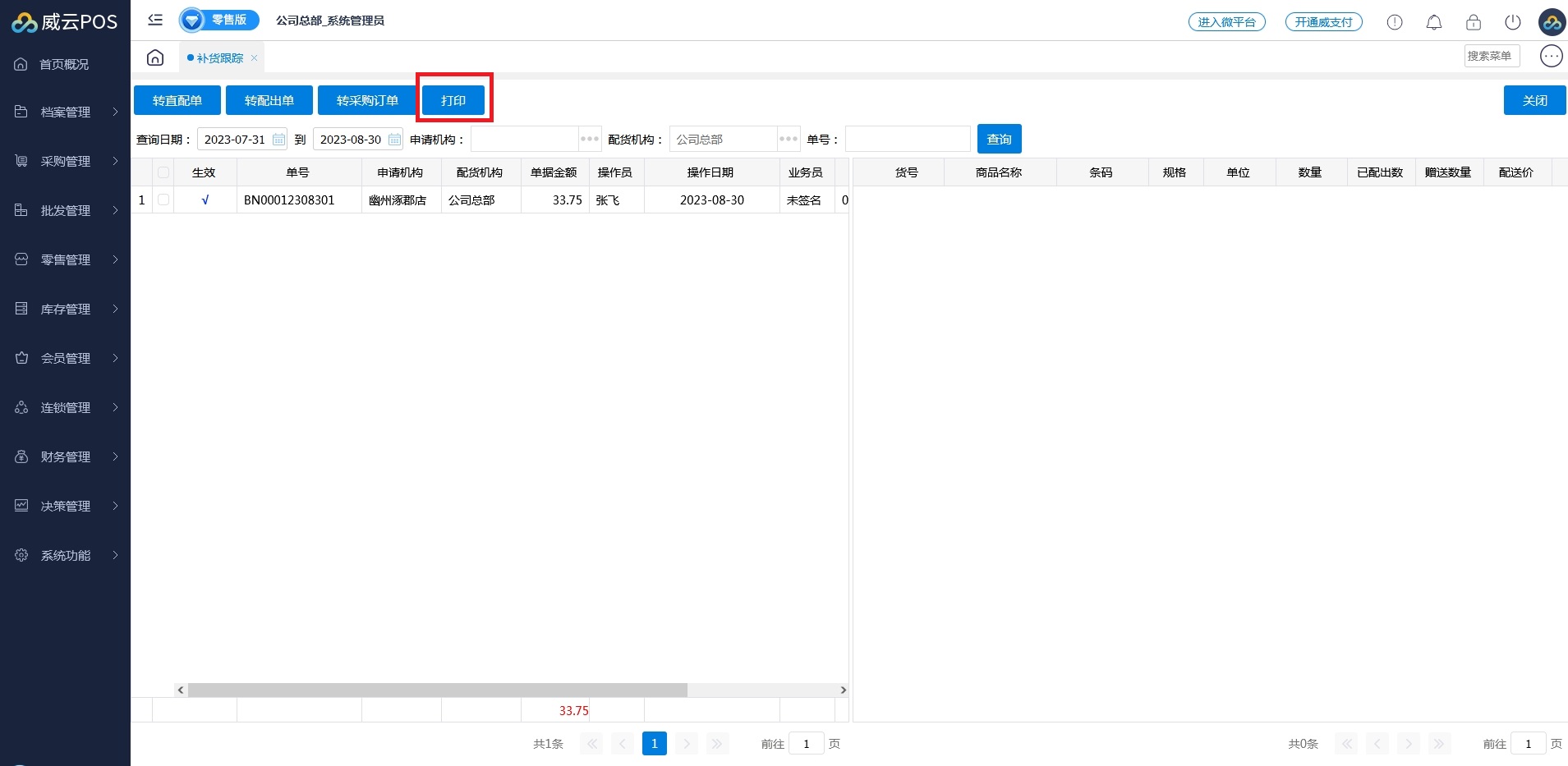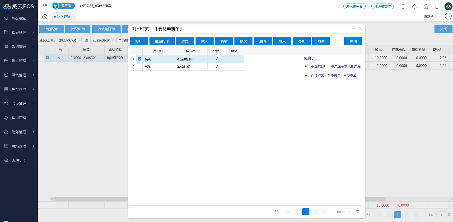 08. 威云后臺(tái)入庫補(bǔ)貨跟蹤增加了打印要貨申請(qǐng)單的功能