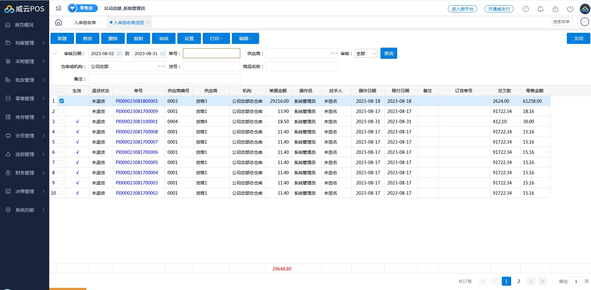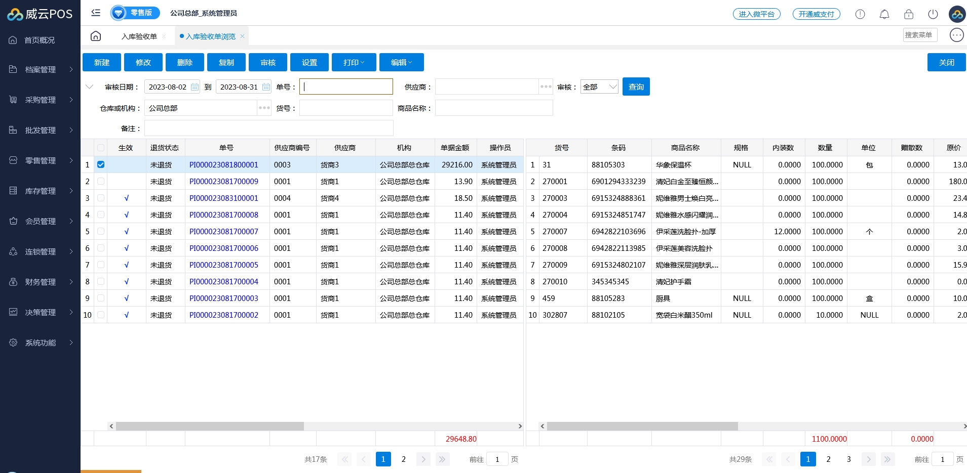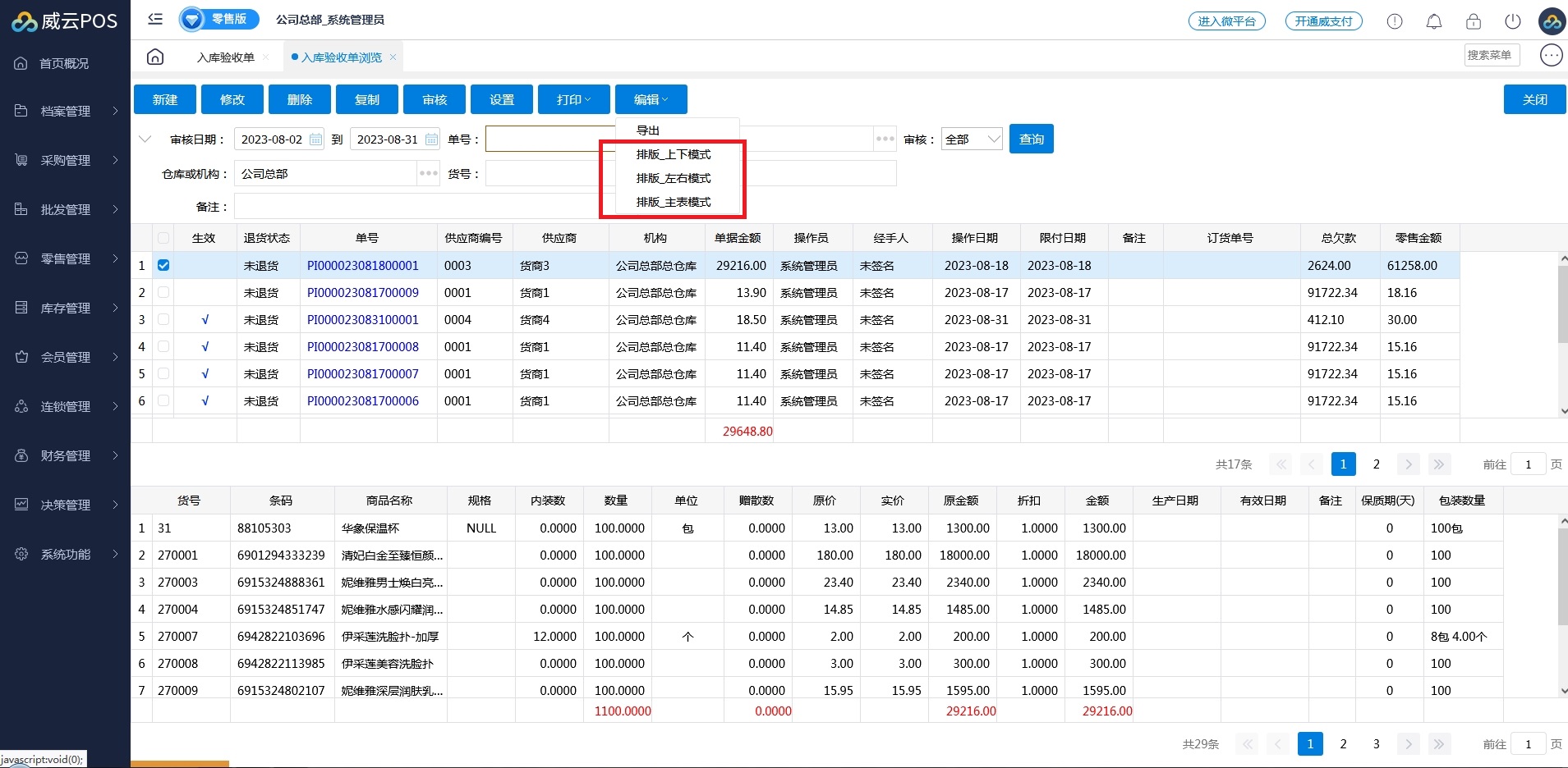 10. 威云后臺(tái)威云后臺(tái)入庫驗(yàn)收單單據(jù)瀏覽頁面編輯下拉菜單增加了排版模式風(fēng)格顯示的功能