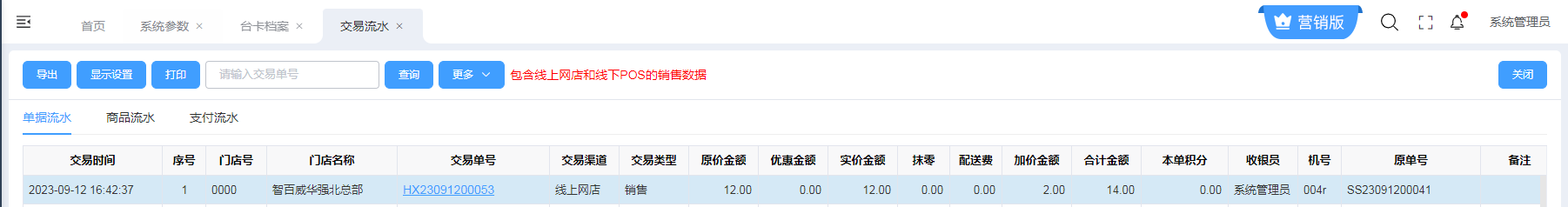 ④ 接單后,可以在后臺交易流水報(bào)表查到銷售單