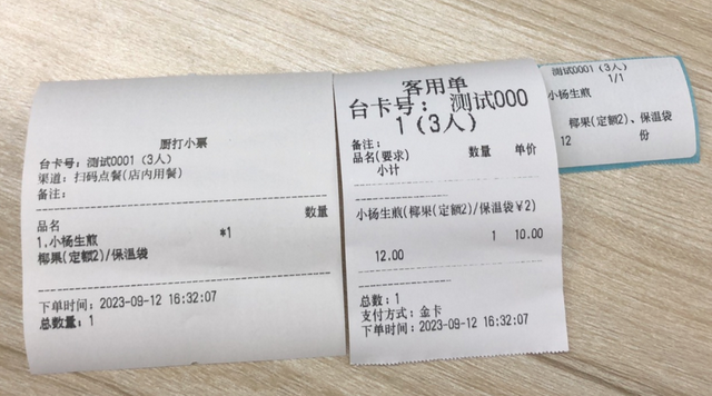 三張小票上都會打印 臺卡名稱及就餐人數(shù)