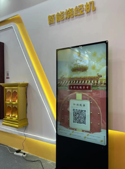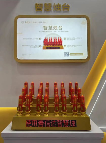 此次展會(huì)也在展館現(xiàn)場(chǎng)搭建了智能佛墻、智能牌位、智能燭臺(tái)、智慧點(diǎn)燈機(jī)、智慧供佛機(jī)、智慧功德箱、智慧云客堂、智慧燒金機(jī)、戶外大屏等供師父?jìng)凅w驗(yàn)。