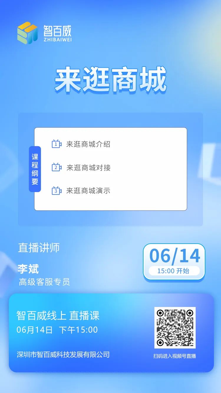 那么,來逛商城要如何搭建呢?6月14日下午3點,智百威高級客服將在智百威直播間為您演示搭建方法,一起交流學(xué)習(xí)起來吧~