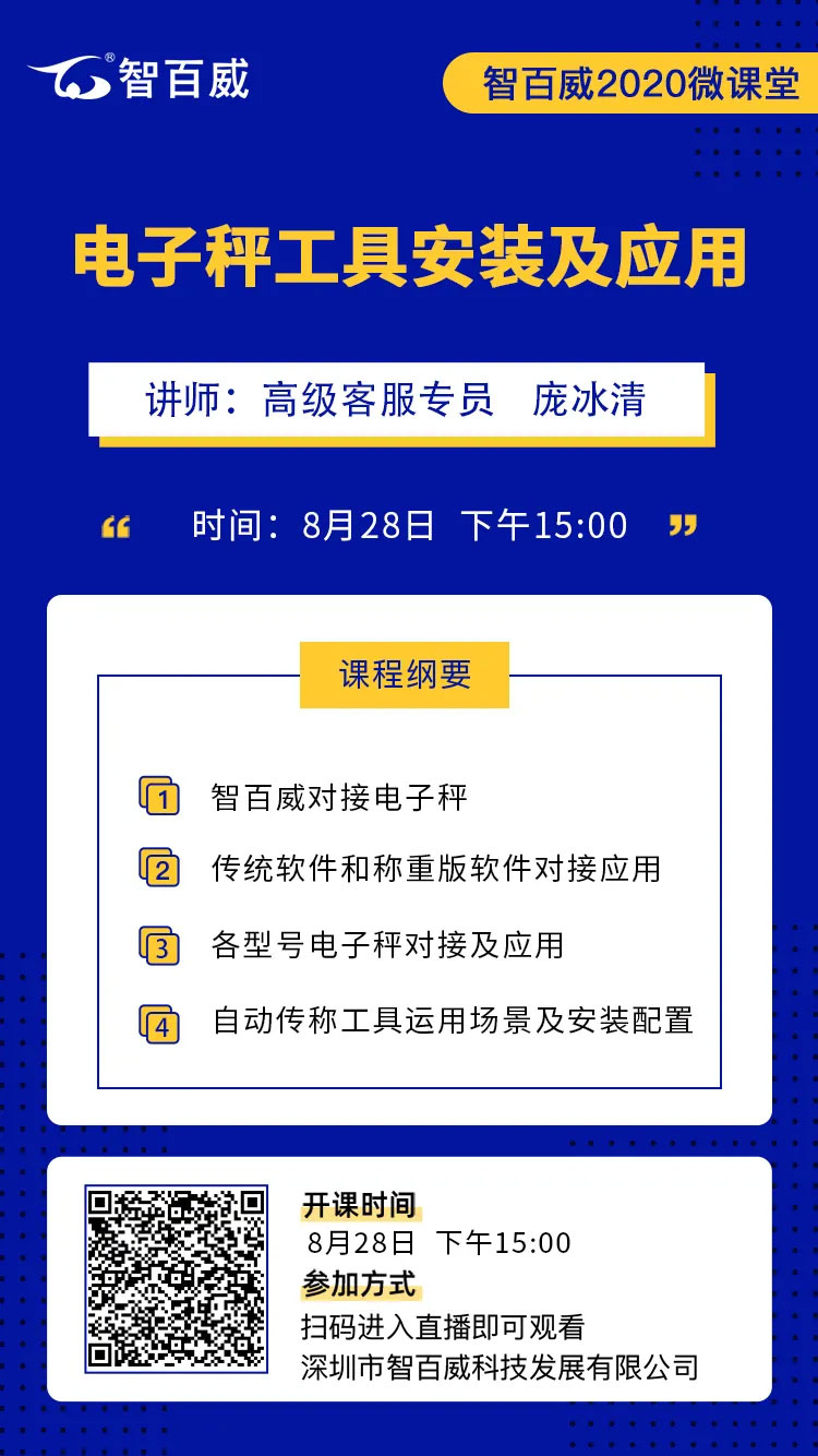 零售門店里最常用的硬件,電子秤肯定是榜上有名,基本上每天都需要用到,但安裝時的技巧,使用起來如何能高效,智百威倒是知道一二,欲知方法詳情請鎖定8月28號下午3點(即下周五)由智百威高級客服專員直播為你實操演練電子秤安裝及應(yīng)用的方法。