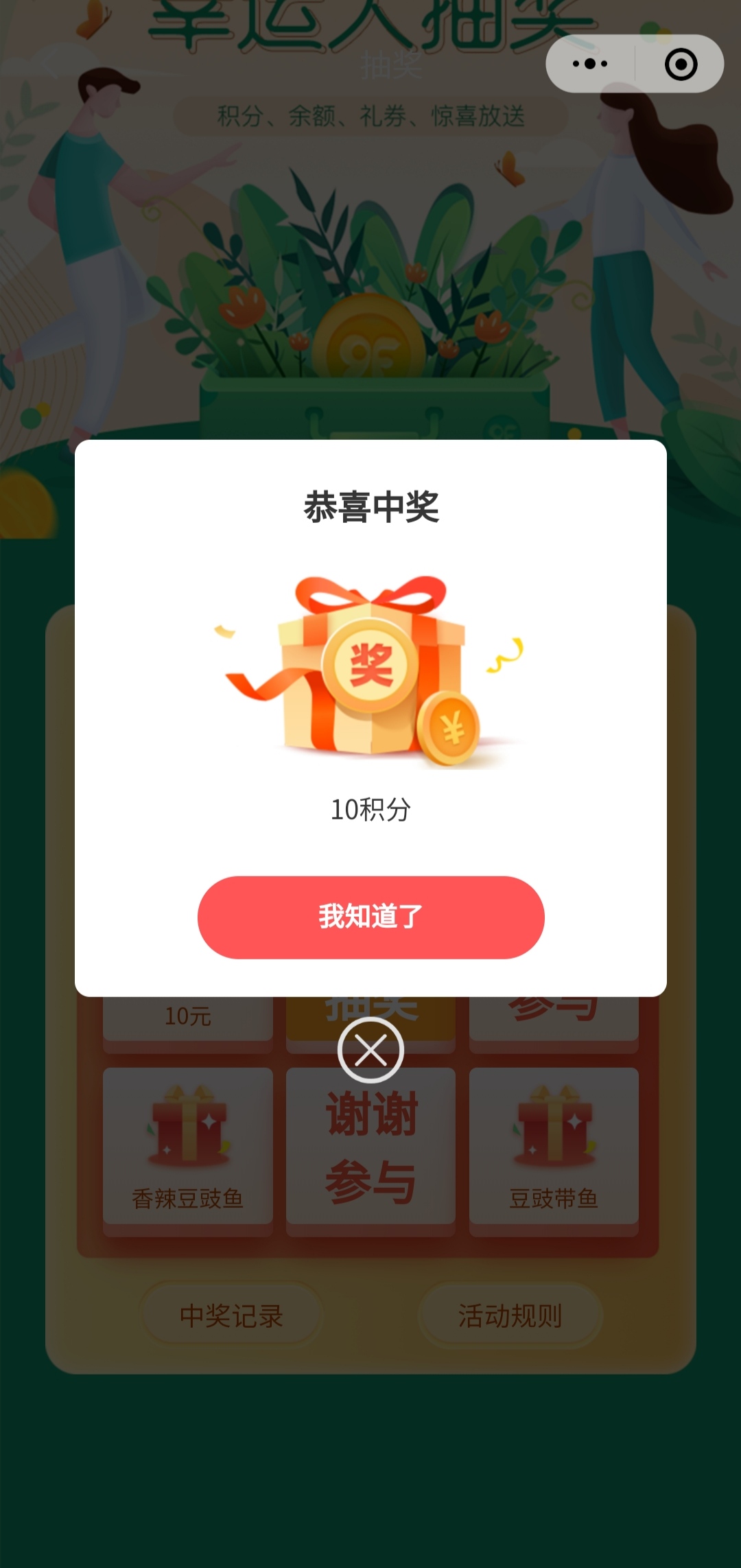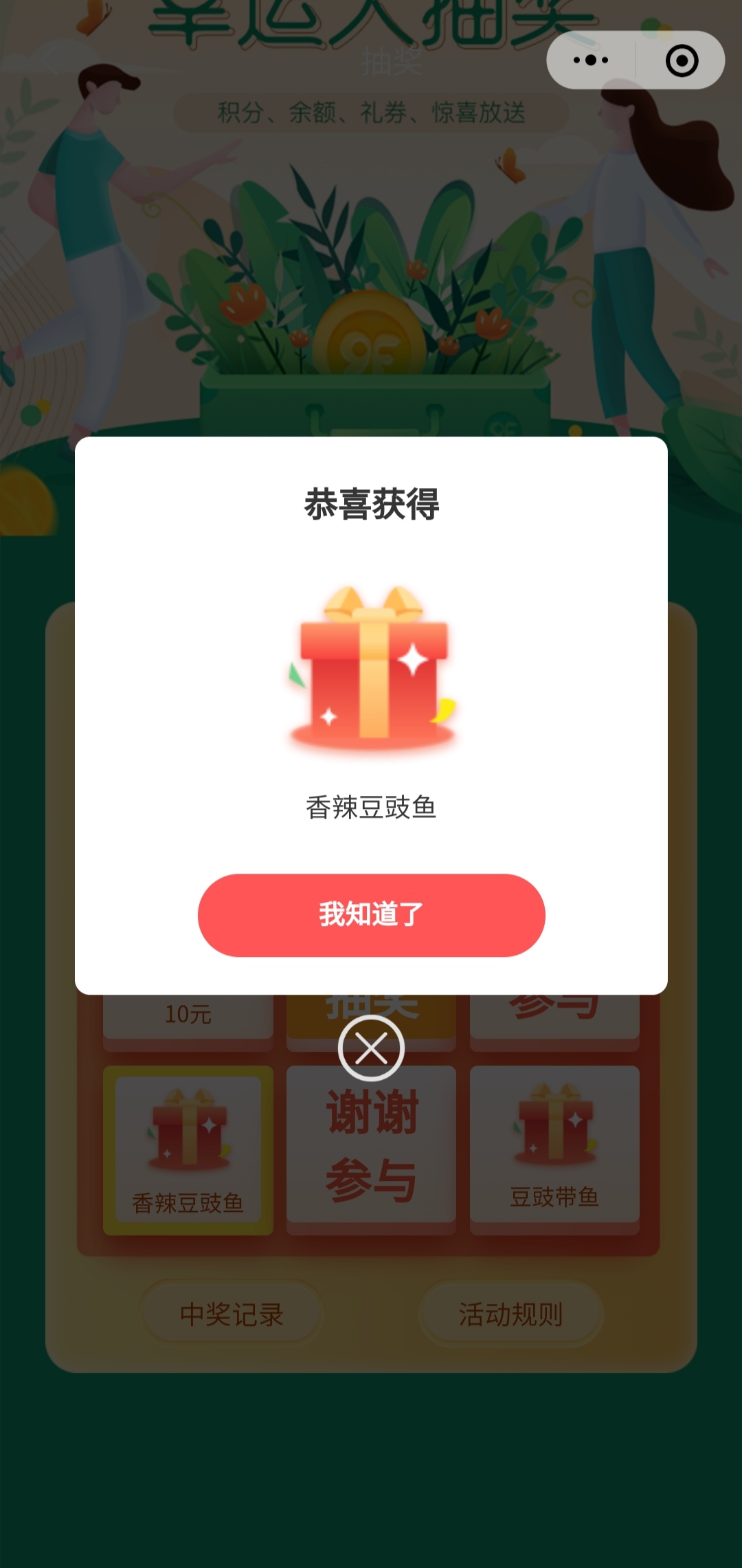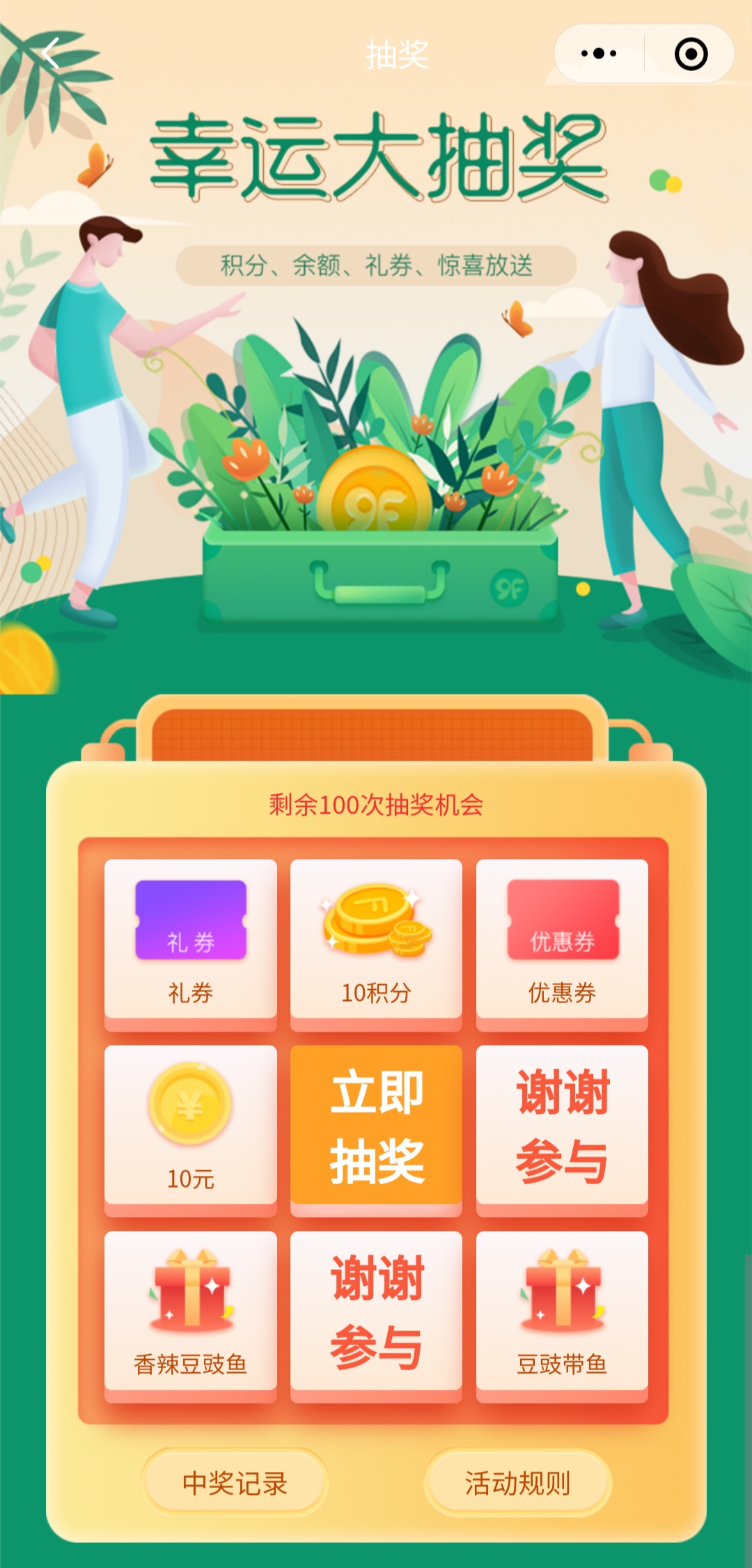 顧客在抽獎界面點擊“立即抽獎”即可參與抽獎