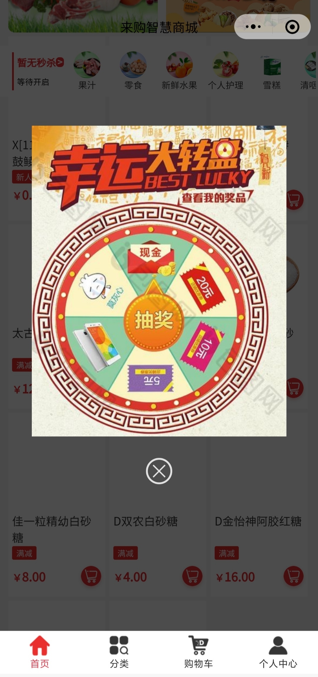 顧客點擊抽獎中獎后會彈出中獎的框以及中獎的對應獎品