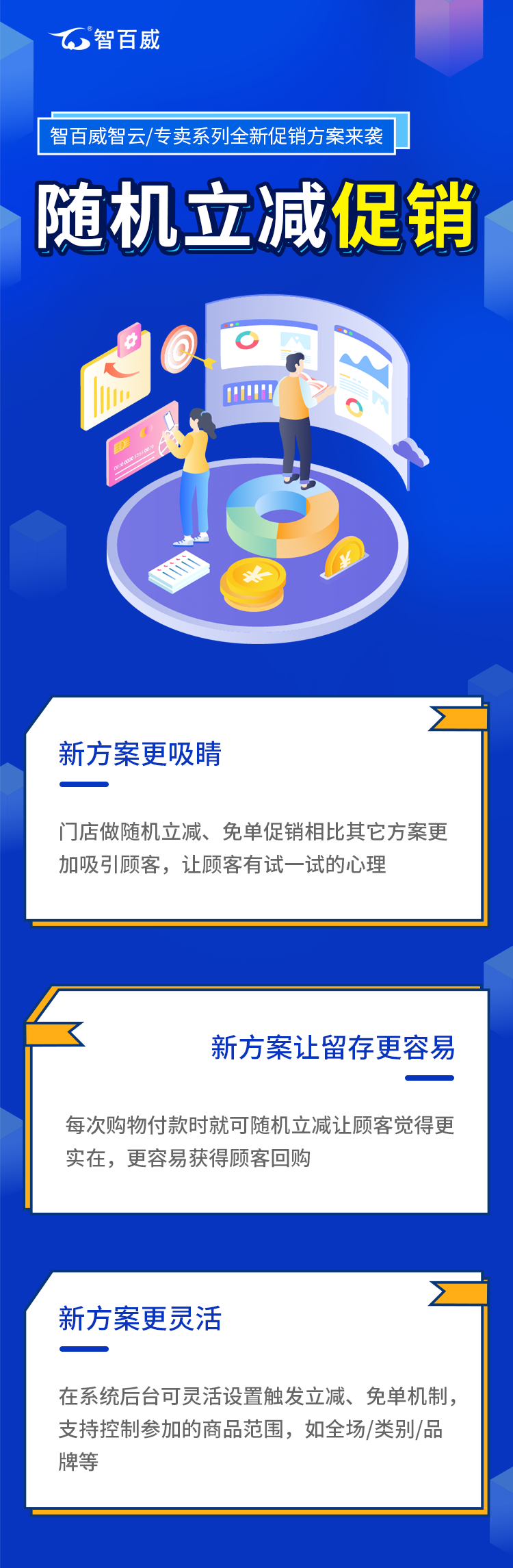 隨機(jī)立減促銷(xiāo)功能根據(jù)設(shè)置的促銷(xiāo)類(lèi)型、參與機(jī)構(gòu)以及觸發(fā)機(jī)率,在立減起止金額內(nèi)進(jìn)行買(mǎi)單減現(xiàn)、也可設(shè)置免單的機(jī)制