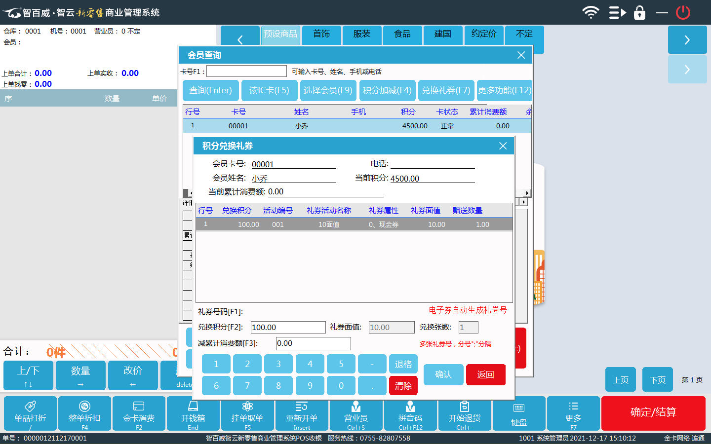 智百威軟件前臺換券界面 ?
