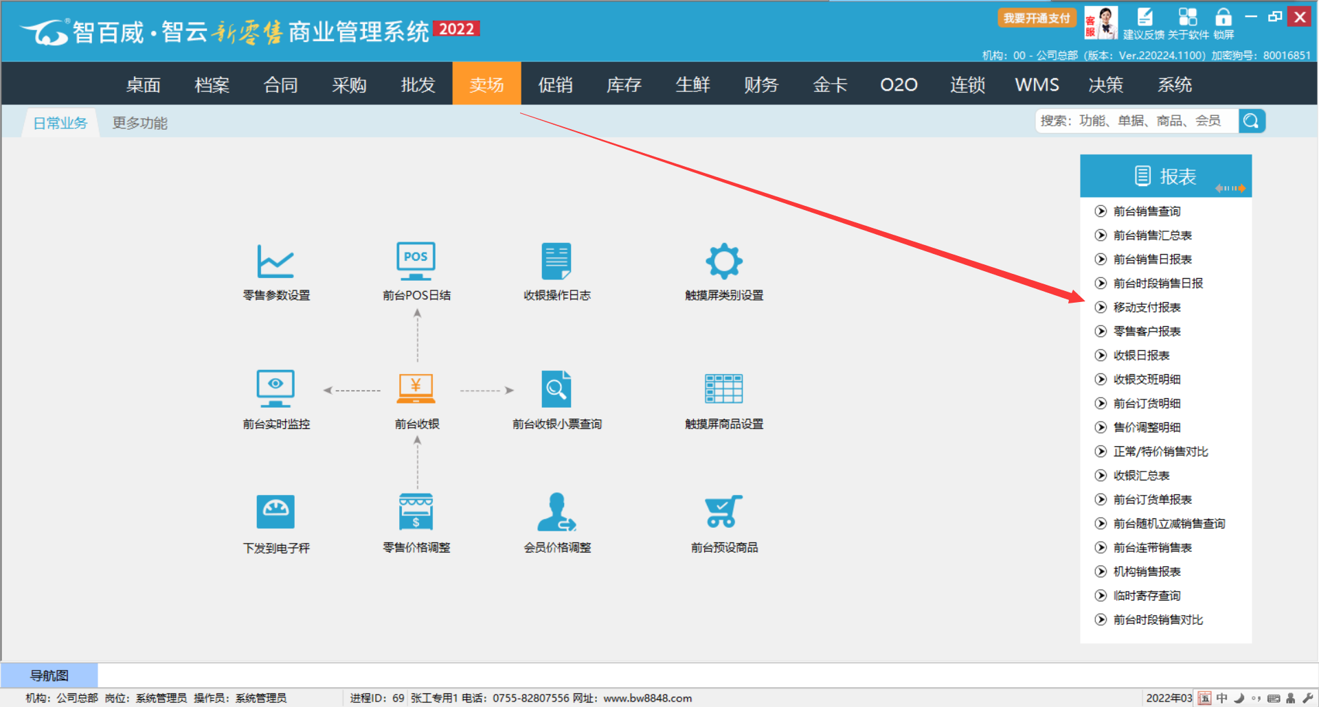 報(bào)表查詢(xún)路徑:賣(mài)場(chǎng)--移動(dòng)支付報(bào)表