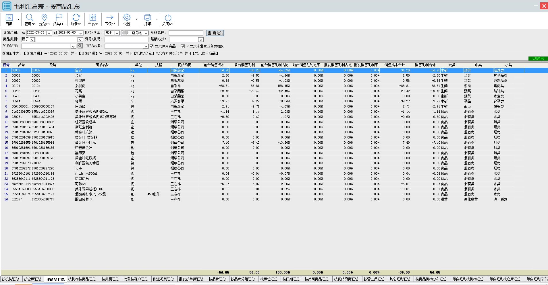 查詢(xún)所有商品前臺(tái)銷(xiāo)售金額、成本、毛利、毛利率,包括按倉(cāng)庫(kù)、類(lèi)別、商品、貨商等匯總。