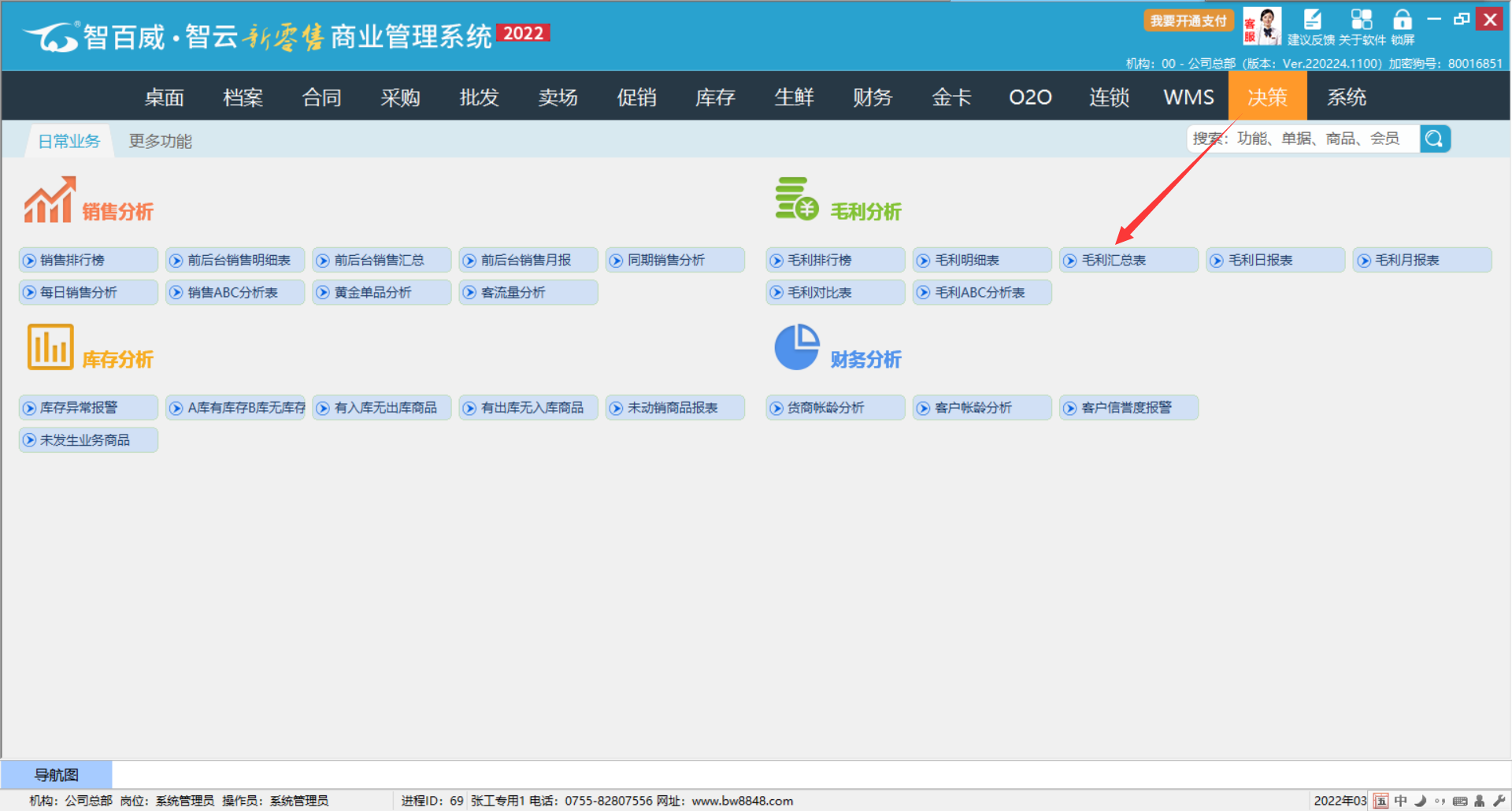 報(bào)表查詢(xún)路徑:決策--毛利分析--毛利匯總表