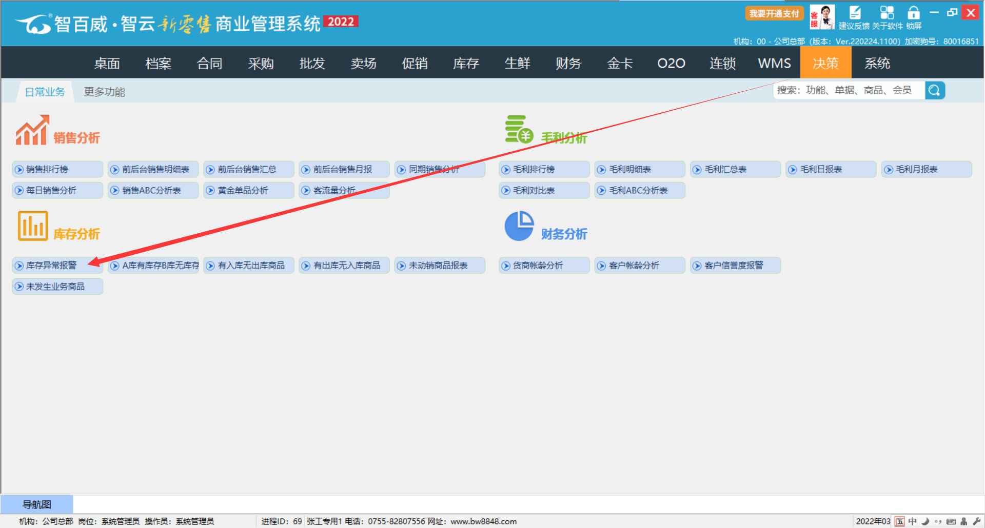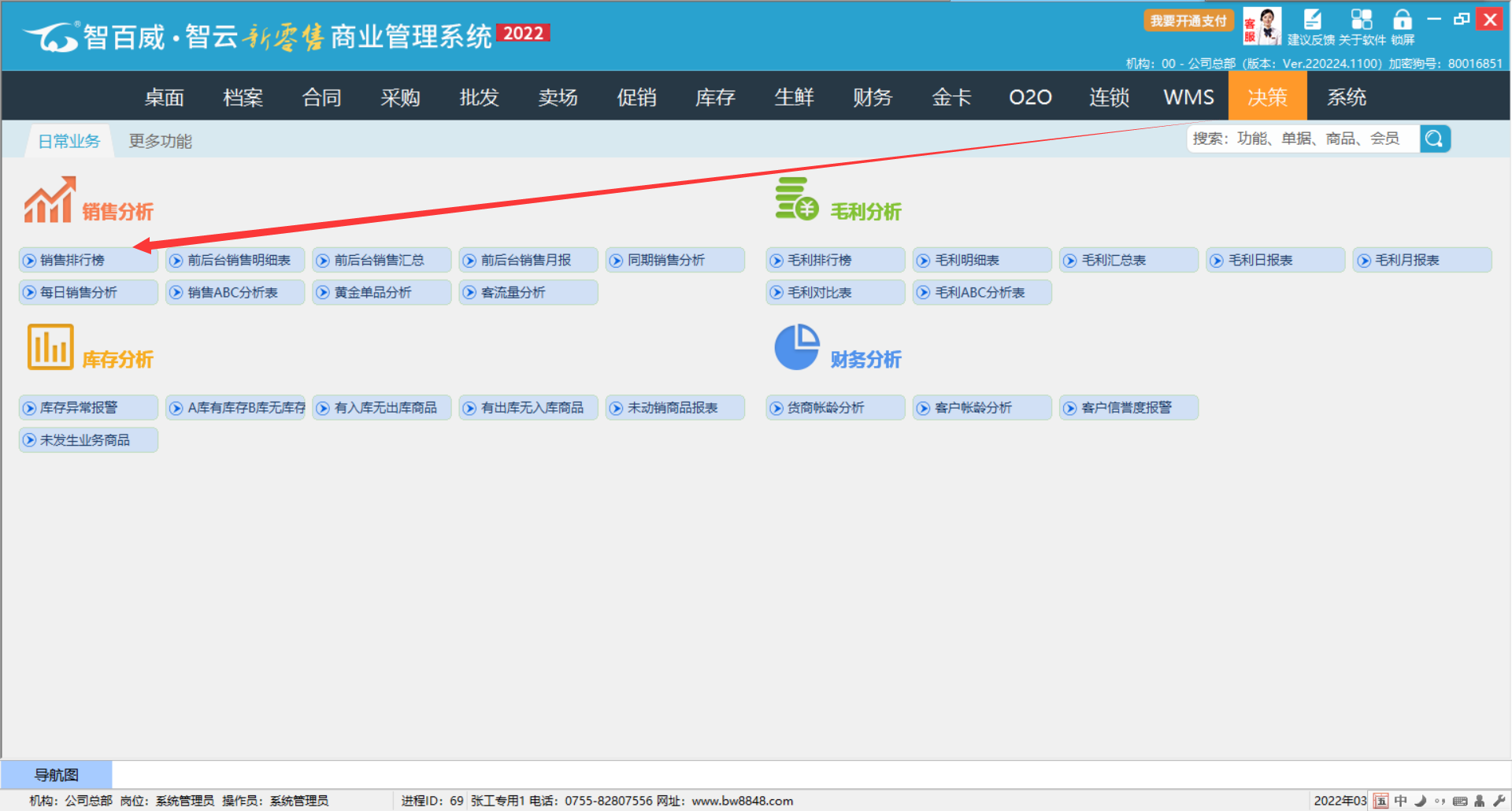 報(bào)表查詢(xún)路徑:決策--銷(xiāo)售排行榜