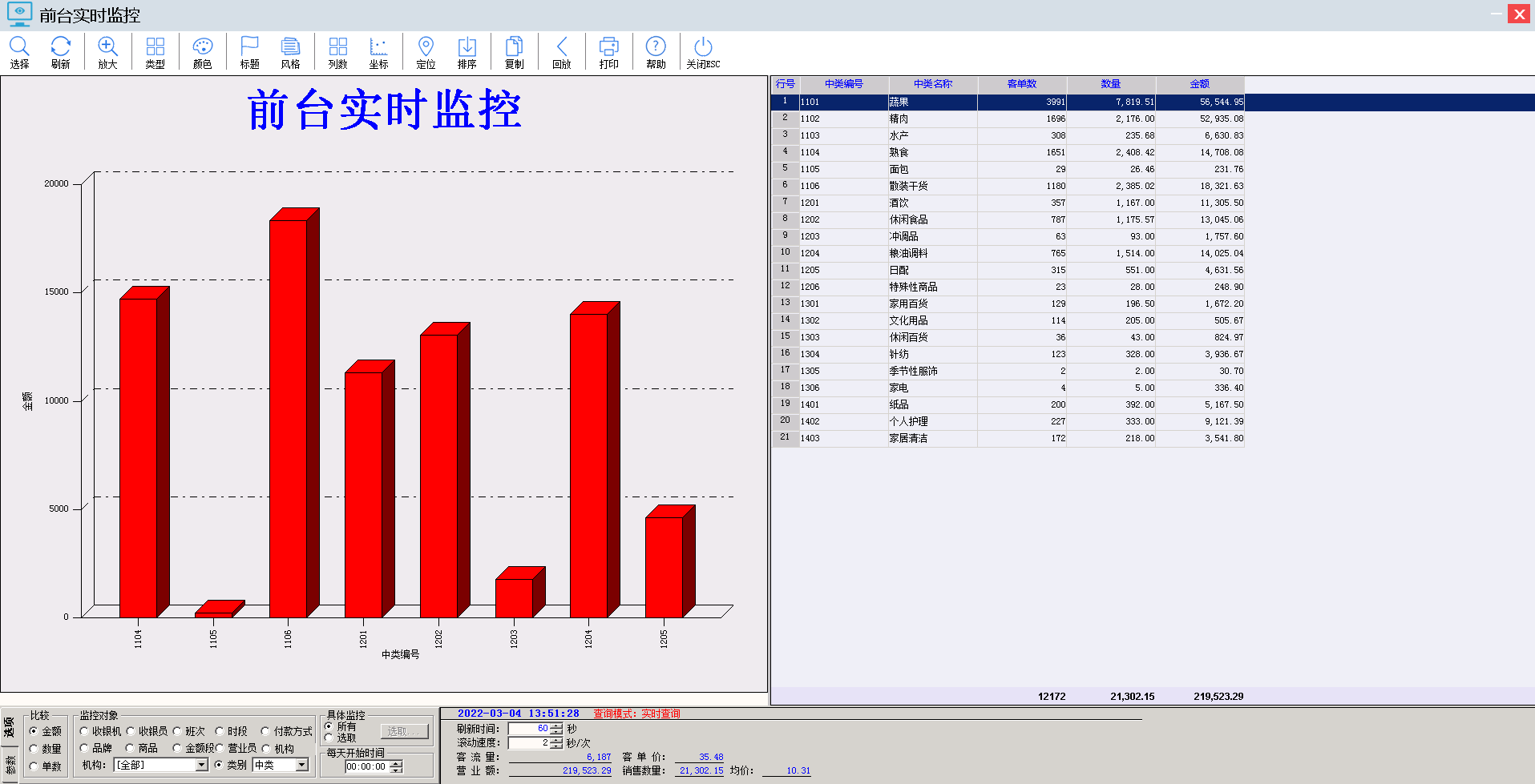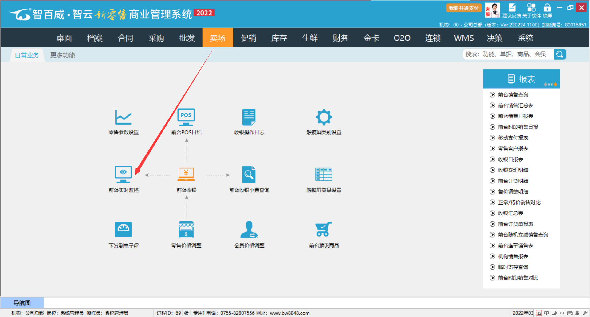 報(bào)表查詢(xún)路徑:賣(mài)場(chǎng)--前臺(tái)實(shí)時(shí)監(jiān)控