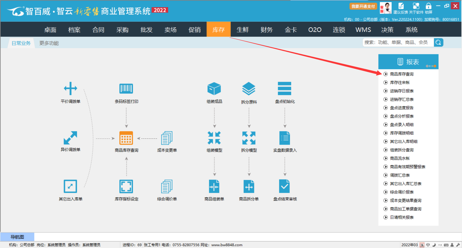 查詢(xún)公司倉(cāng)庫(kù)商品庫(kù)存,包括商品、貨商庫(kù)存匯總,己出庫(kù)未進(jìn)貨業(yè)務(wù)、批次庫(kù)存查詢(xún)、商品庫(kù)存分布、商品多包裝庫(kù)存、實(shí)時(shí)庫(kù)存查詢(xún)、往日庫(kù)存查詢(xún)、庫(kù)存按進(jìn)價(jià)匯總、按類(lèi)別查詢(xún)。